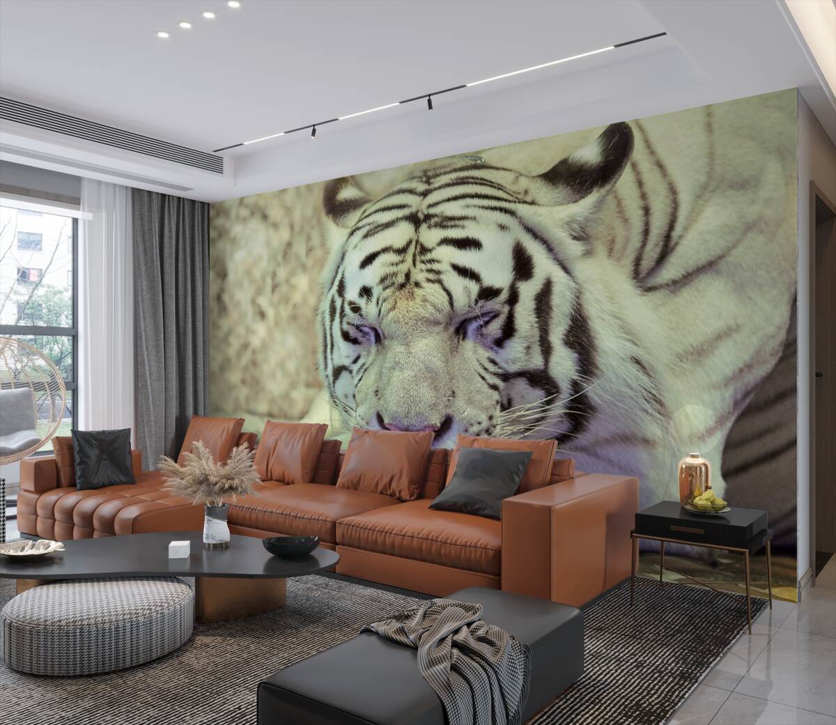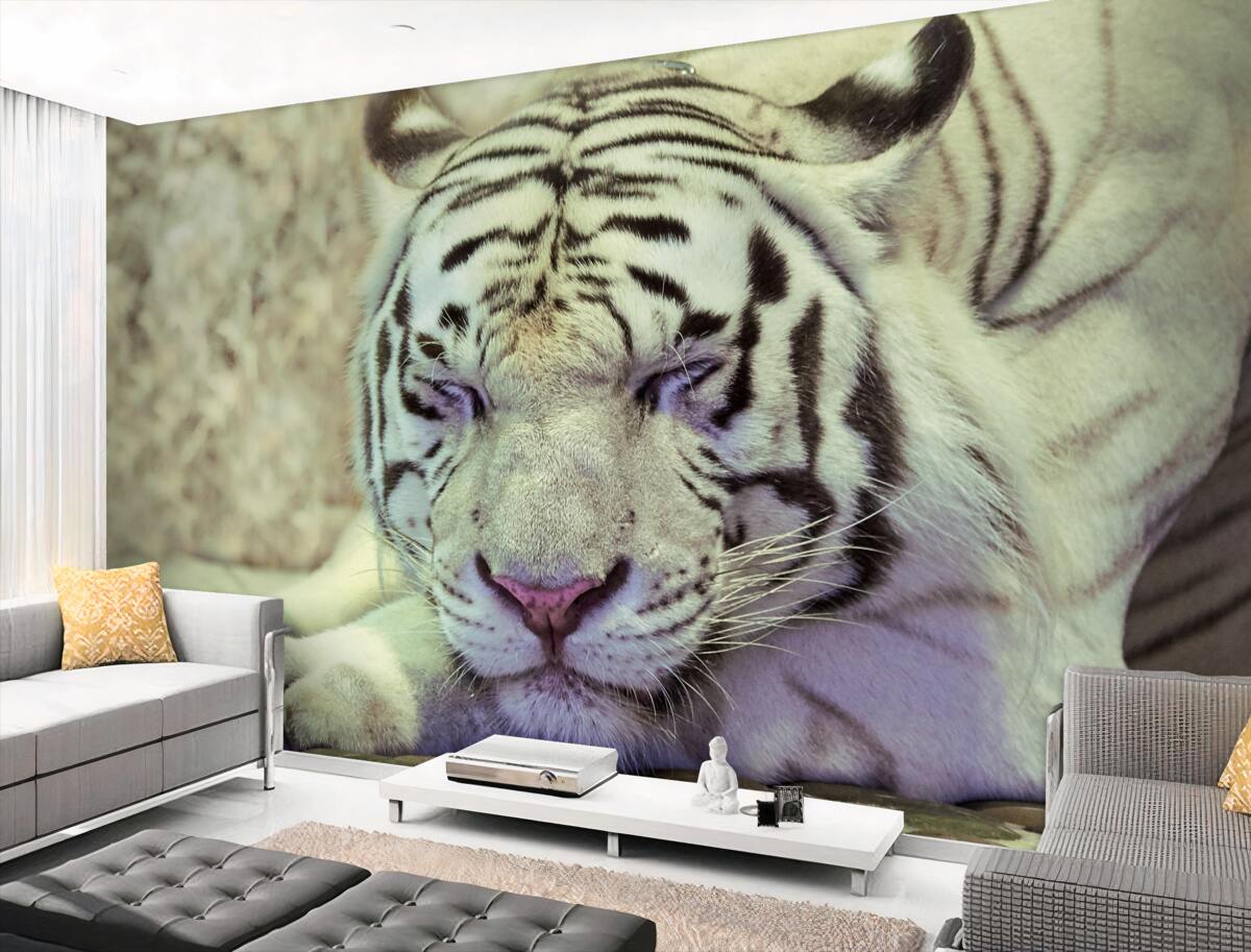Tapeta Fototapeta śpiący biały tygrys (artykuł a95140 ) z kategorii Fototapety Popularne