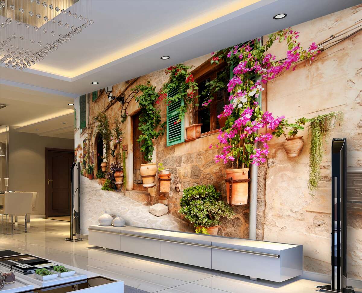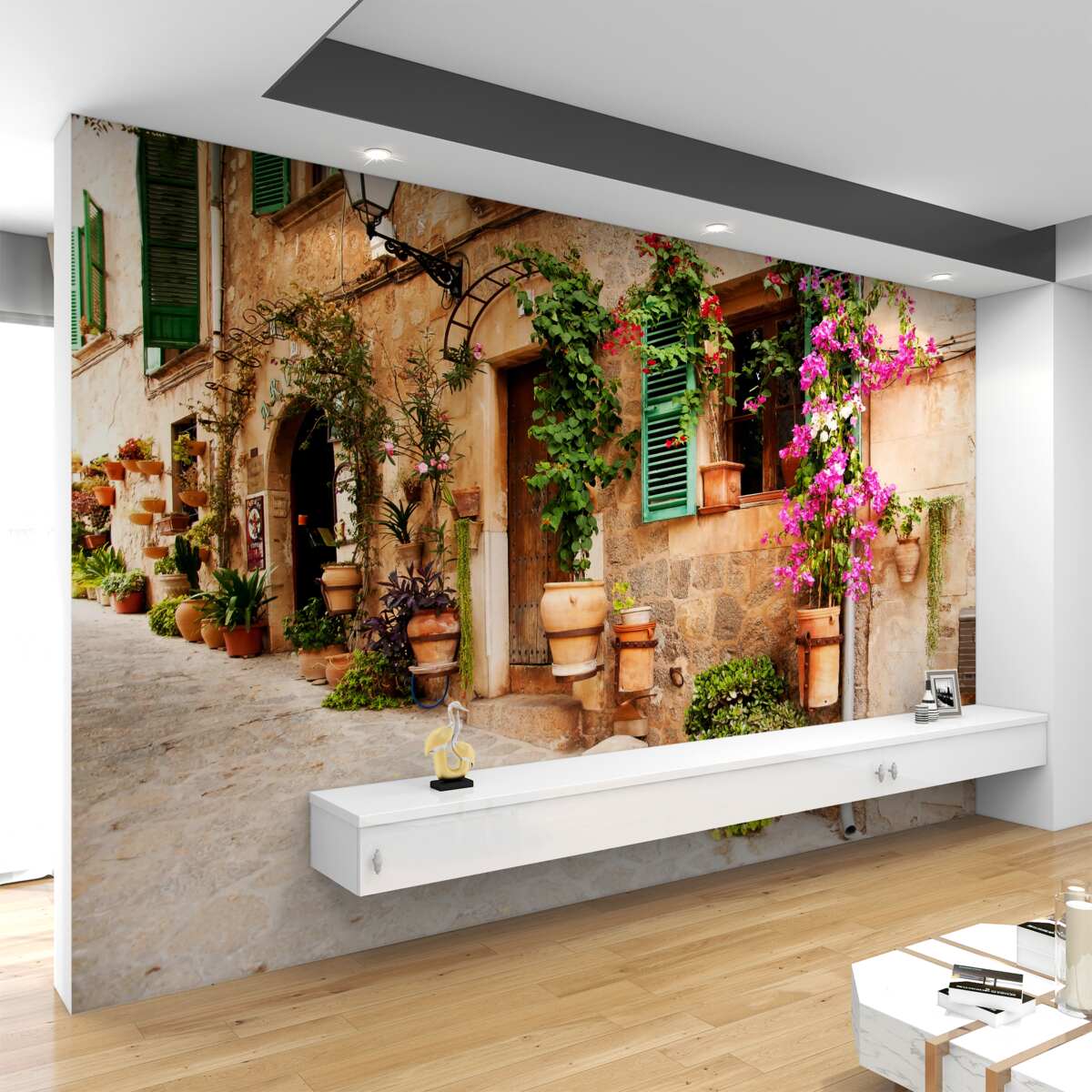Tapeta Fototapeta stara, pochyła ulica w kwiatach (artykuł a95954 ) z kategorii Fototapety Popularne