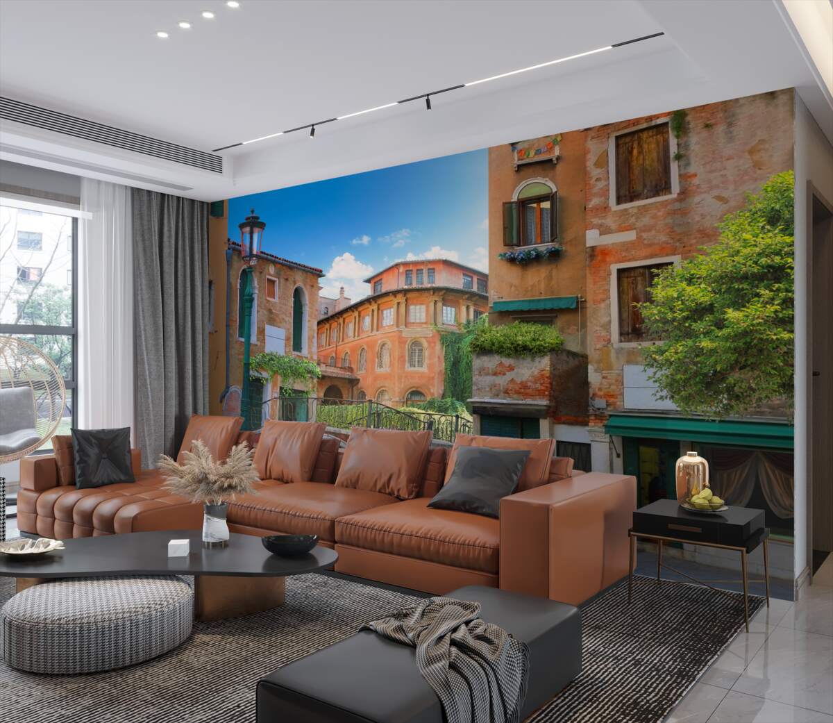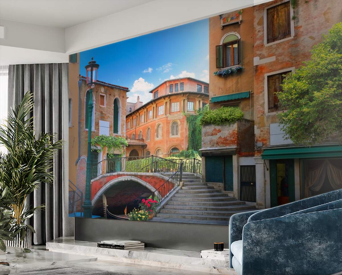 Tapeta Fototapeta stare domy i most (artykuł a96767 ) z kategorii Fototapety Popularne