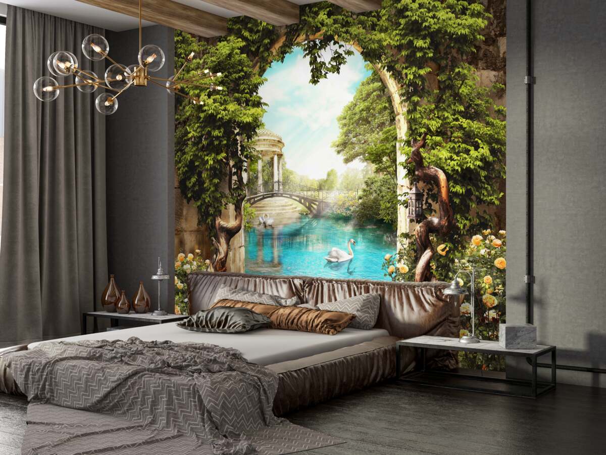 Tapeta Fototapeta staw z białymi łabędziami (artykuł a96882 ) z kategorii Fototapety Popularne