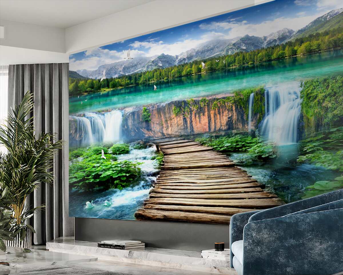 Tapeta Fototapeta taras widokowy przed spadającym wodospadem (artykuł a96466 ) z kategorii Fototapety Popularne