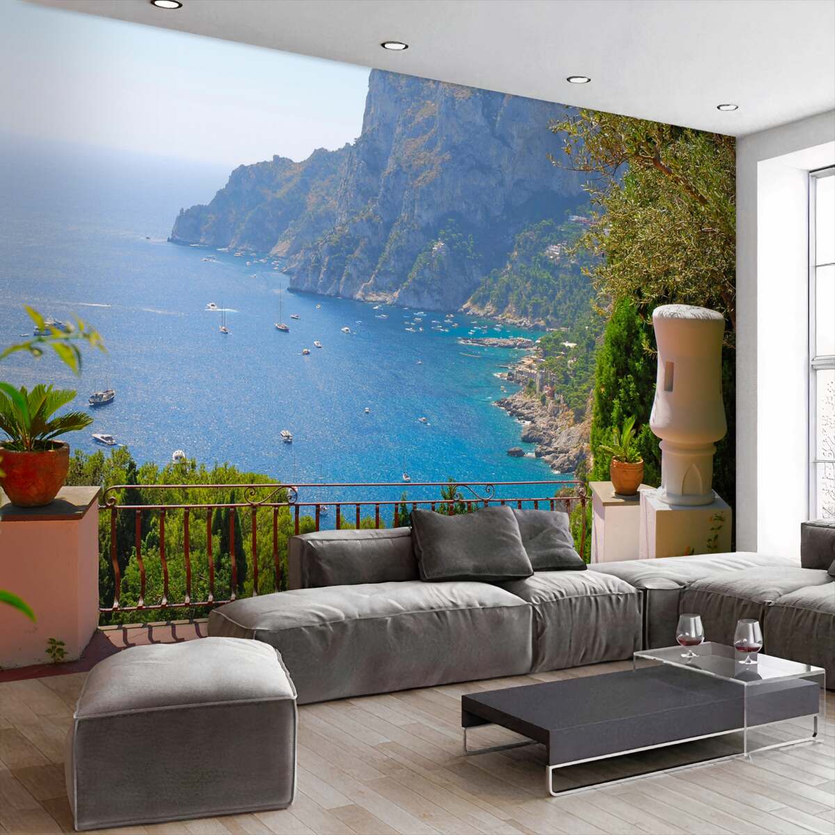 Tapeta Fototapeta taras z widokiem na skały i morze (artykuł a94937 ) z kategorii Fototapety Popularne
