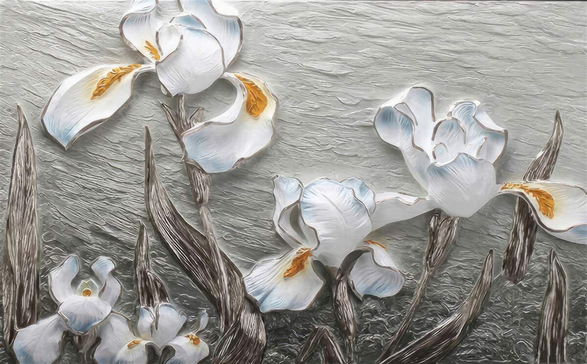 Tapeta Fototapeta trójwymiarowe kwiaty pomalowane na biało (artykuł a97192 ) z kategorii Fototapety Popularne