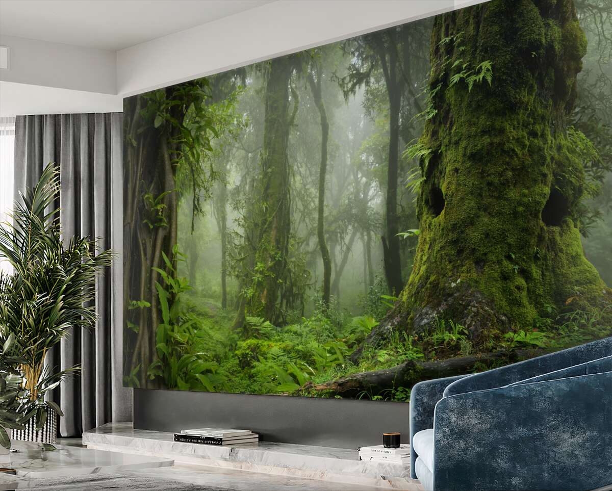 Tapeta Fototapeta ulewny deszcz w starym lesie (artykuł a95961 ) z kategorii Fototapety Popularne