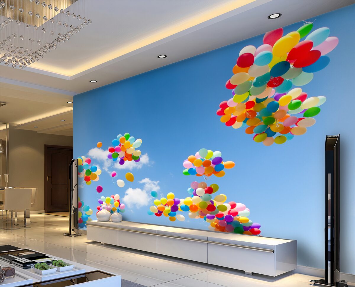 Tapeta Fototapeta w niebo wystrzeliwane są setki kolorowych balonów (artykuł a95910 ) z kategorii Fototapety Popularne