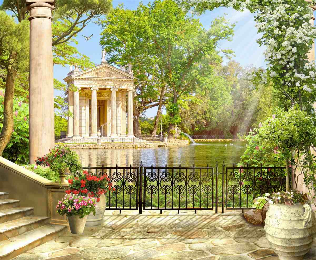 Tapeta Fototapeta widok na jezioro i altana (artykuł a96800 ) z kategorii Fototapety Popularne