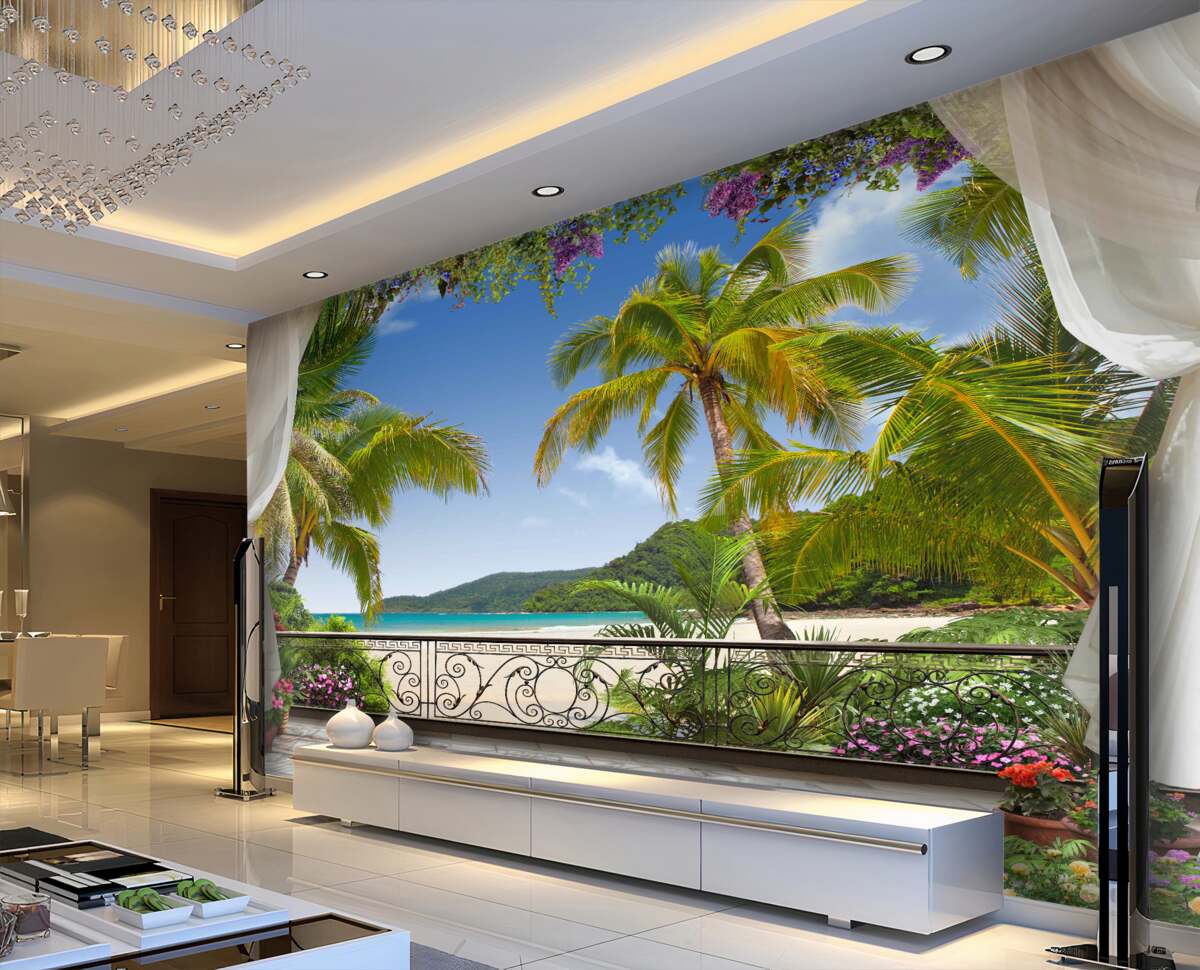 Tapeta Fototapeta widok na palmy na plaży (artykuł a96932 ) z kategorii Fototapety Popularne