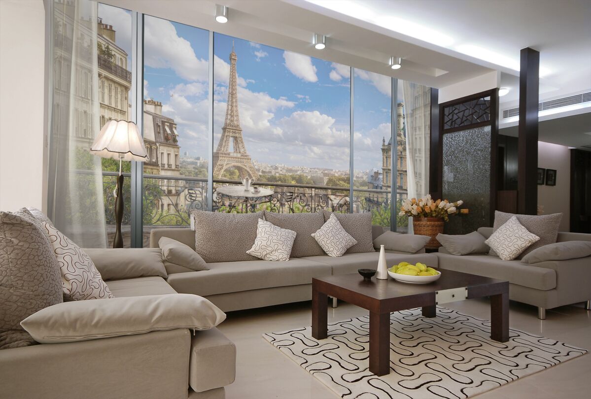 Tapeta Fototapeta widok z balkonu na Wieżę Eiffla (artykuł a97021 ) z kategorii Fototapety Popularne