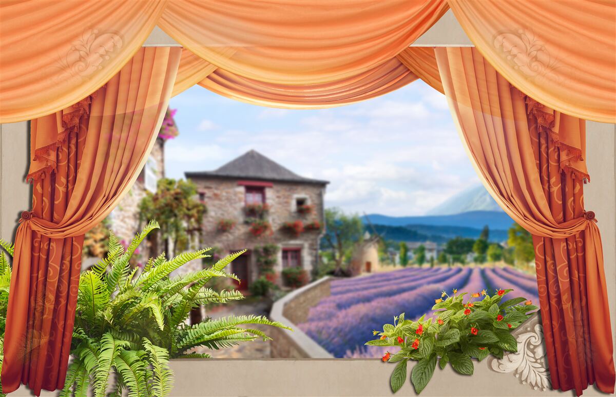Tapeta Fototapeta widok z okna na pole lawendy (artykuł a96759 ) z kategorii Fototapety Popularne