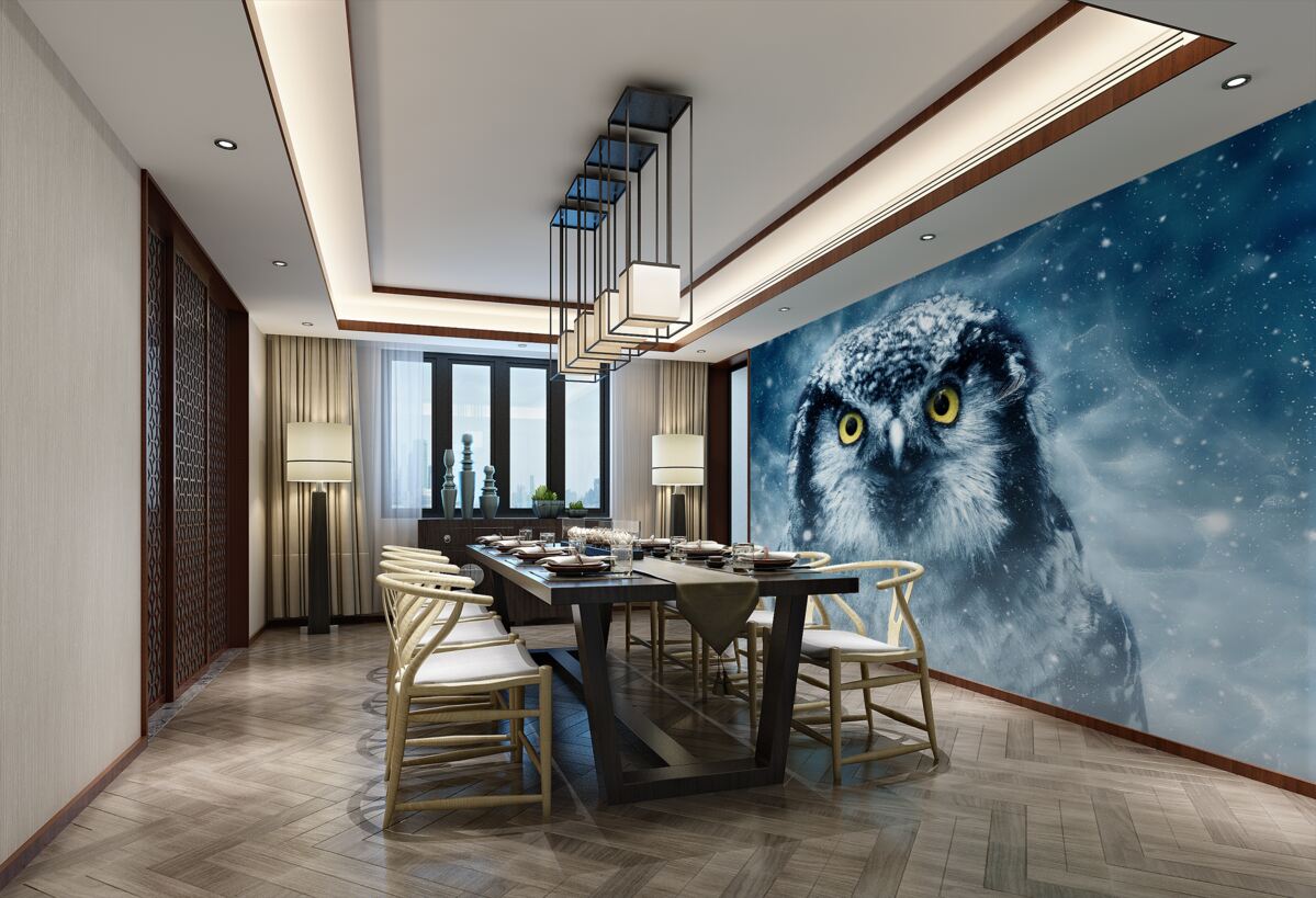 Tapeta Fototapeta wielka żółtooka sowa zimą (artykuł a96099 ) z kategorii Fototapety Popularne