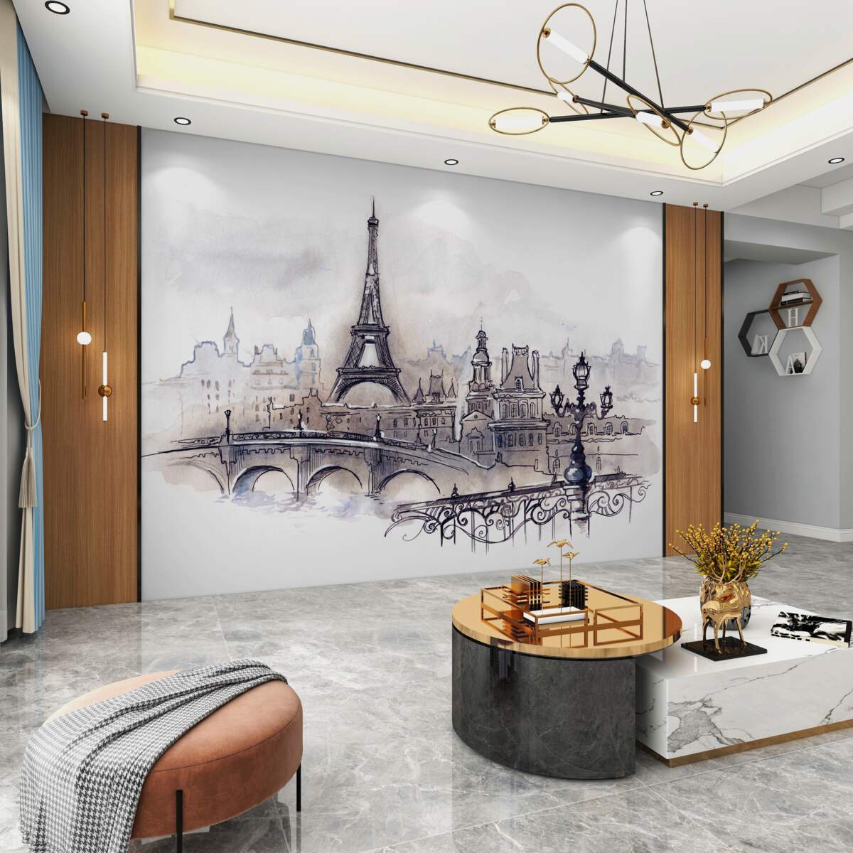 Tapeta Fototapeta Wieża Eiffla i architektura ołówkiem (artykuł a95467 ) z kategorii Fototapety Popularne