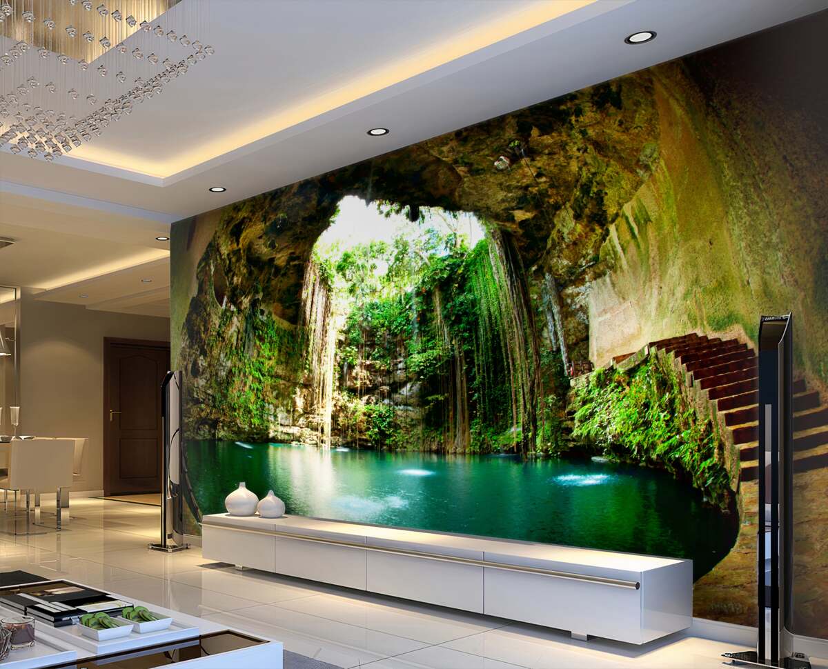 Tapeta Fototapeta wodospad w górskiej jaskini (artykuł a95279 ) z kategorii Fototapety Popularne