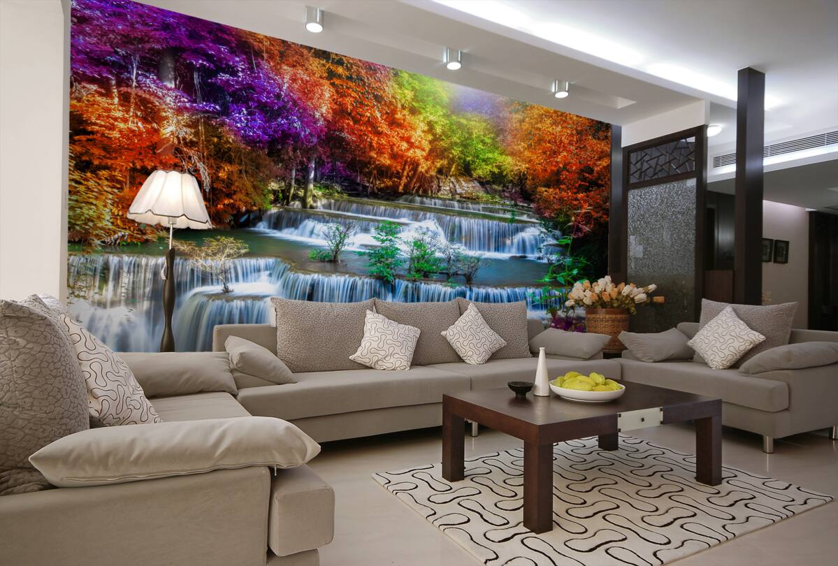 Tapeta Fototapeta wodospad w jesiennym lesie (artykuł a95265 ) z kategorii Fototapety Popularne