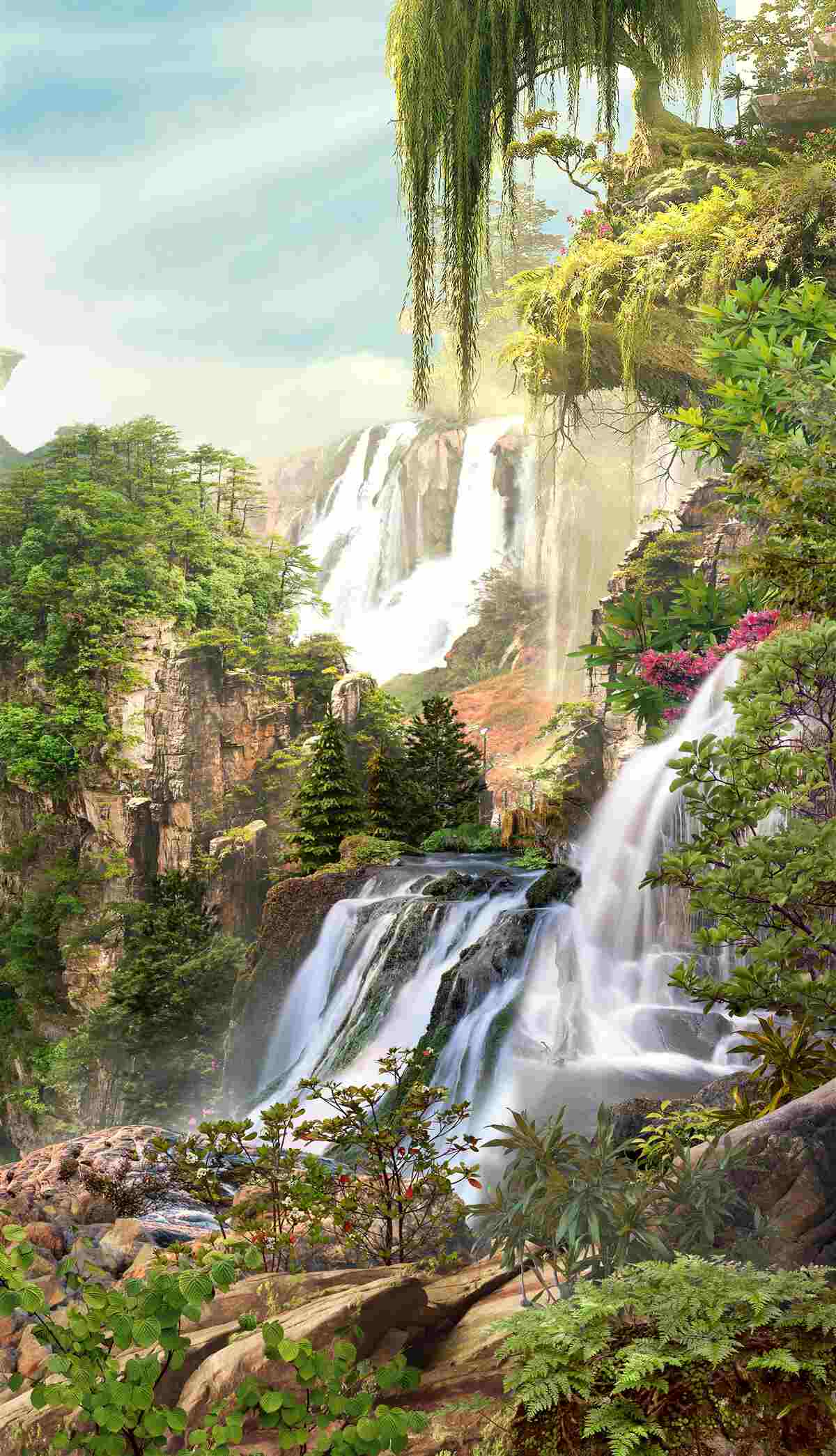 Tapeta Fototapeta wodospady w zieleni (artykuł a96890 ) z kategorii Fototapety Popularne