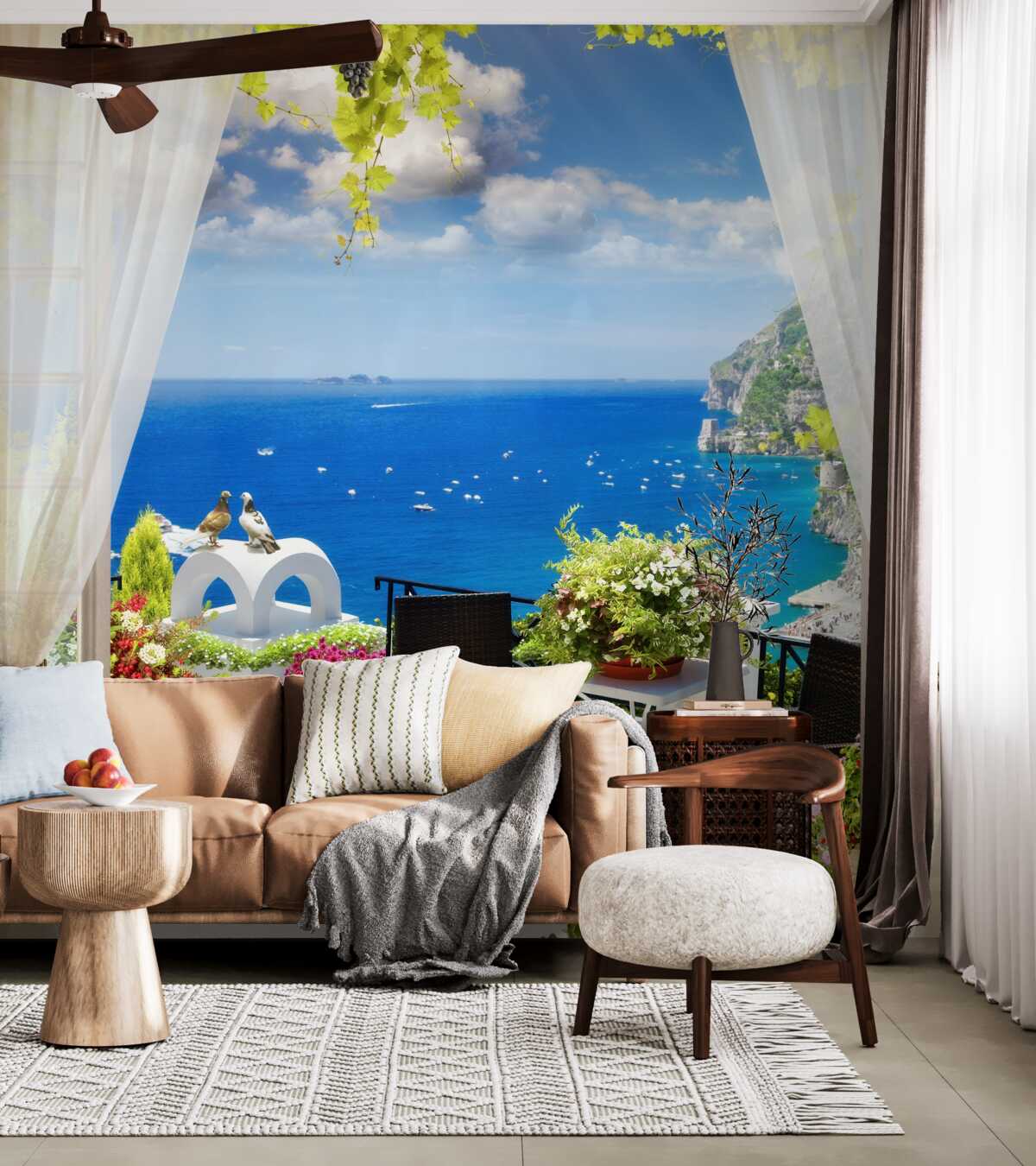 Tapeta Fototapeta wygodny balkon z widokiem na ocean (artykuł a96806 ) z kategorii Fototapety Popularne