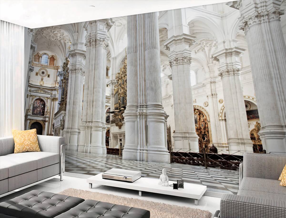 Tapeta Fototapeta wysokie filary z łukami w kościele (artykuł a95569 ) z kategorii Fototapety Popularne