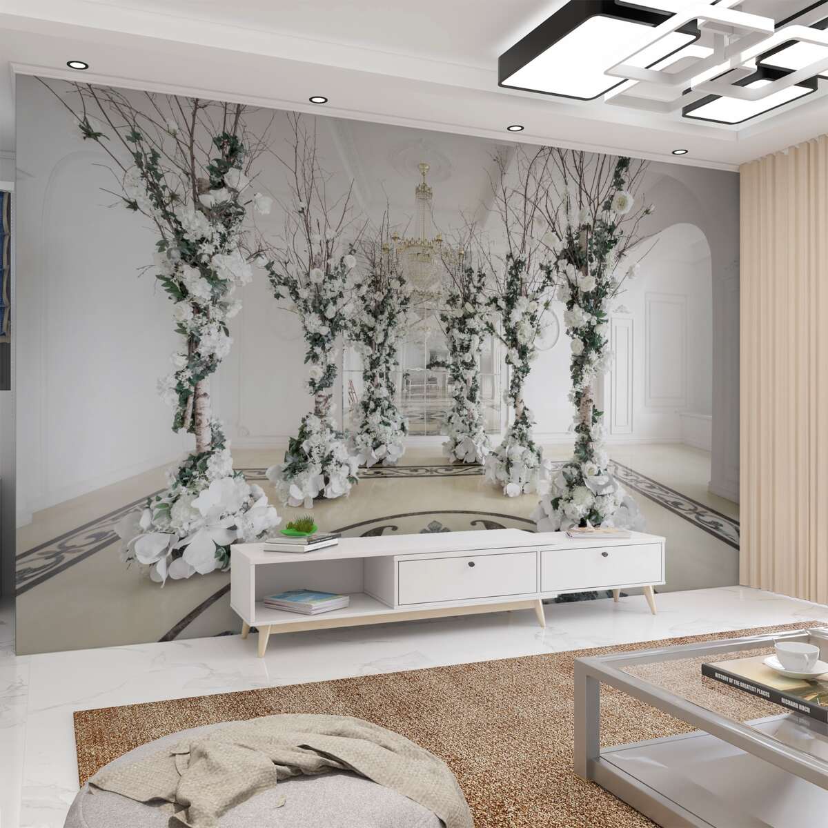 Tapeta Fototapeta wysokie kolumny w białej sali (artykuł a95733 ) z kategorii Fototapety Popularne