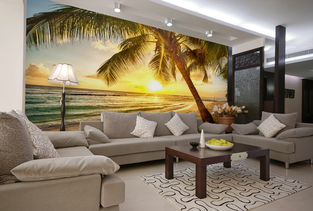 Tapeta Fototapeta zachód słońca na tle oceanu i palm (artykuł a97122 ) z kategorii Fototapety Popularne