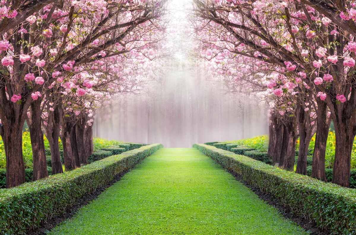 Tapeta Fototapeta zadbana zielona aleja z sakurą (artykuł a96142 ) z kategorii Fototapety Popularne