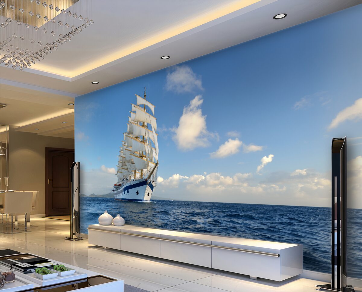 Tapeta Fototapeta żaglowiec na wzburzonych wodach (artykuł a95381 ) z kategorii Fototapety Popularne