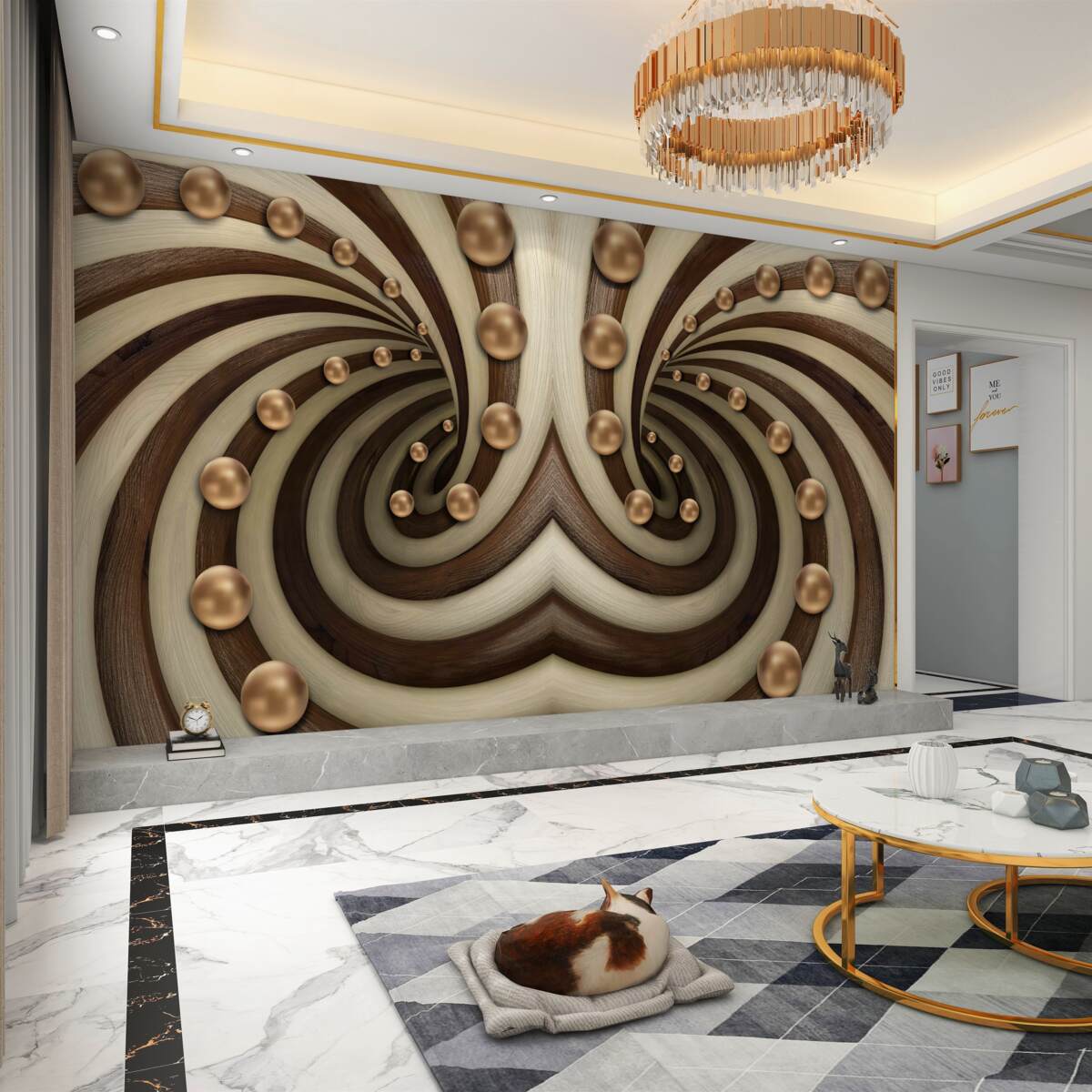 Tapeta Fototapeta złote kulki spadają wzdłuż pasków (artykuł a96241 ) z kategorii Fototapety Popularne