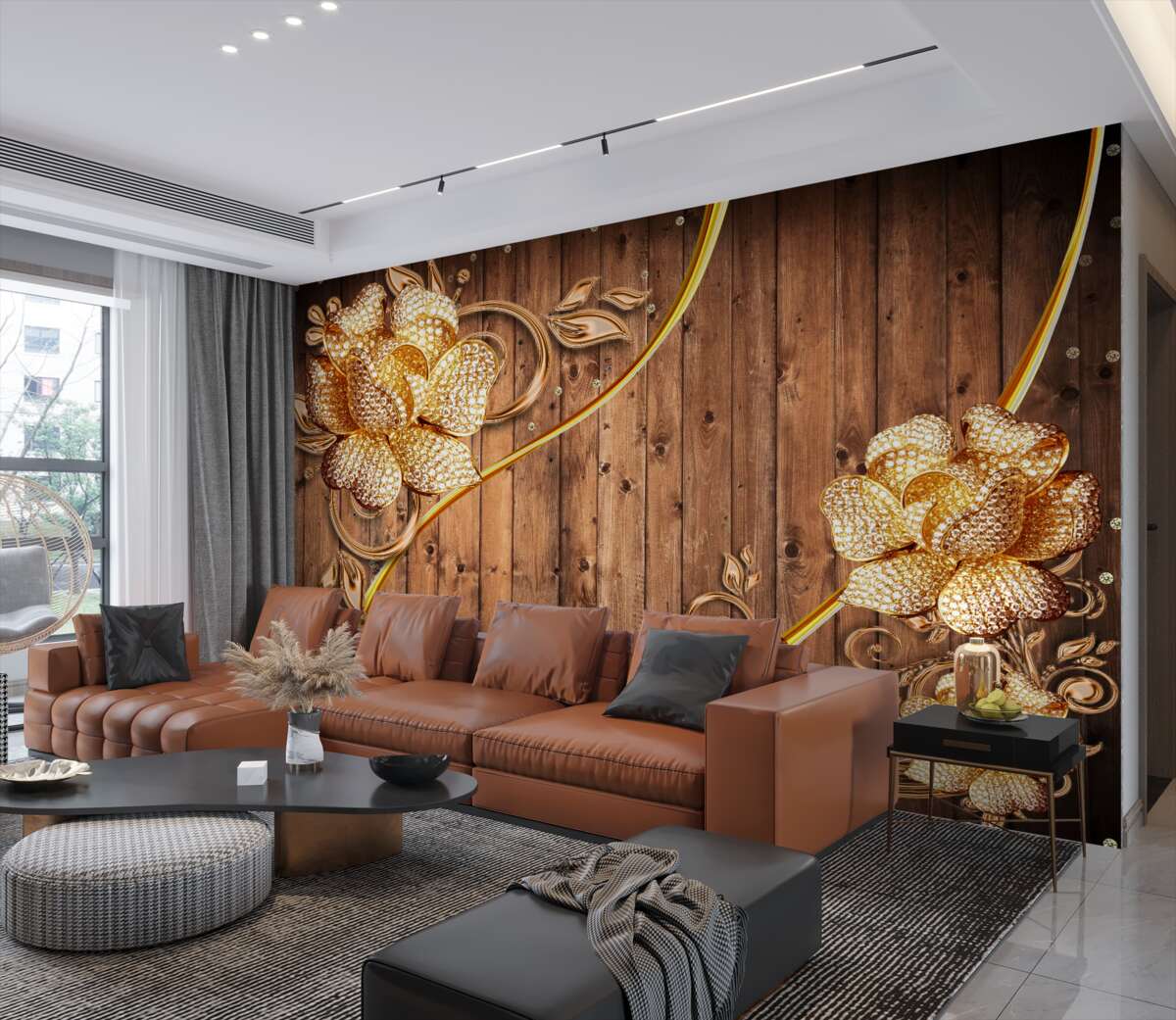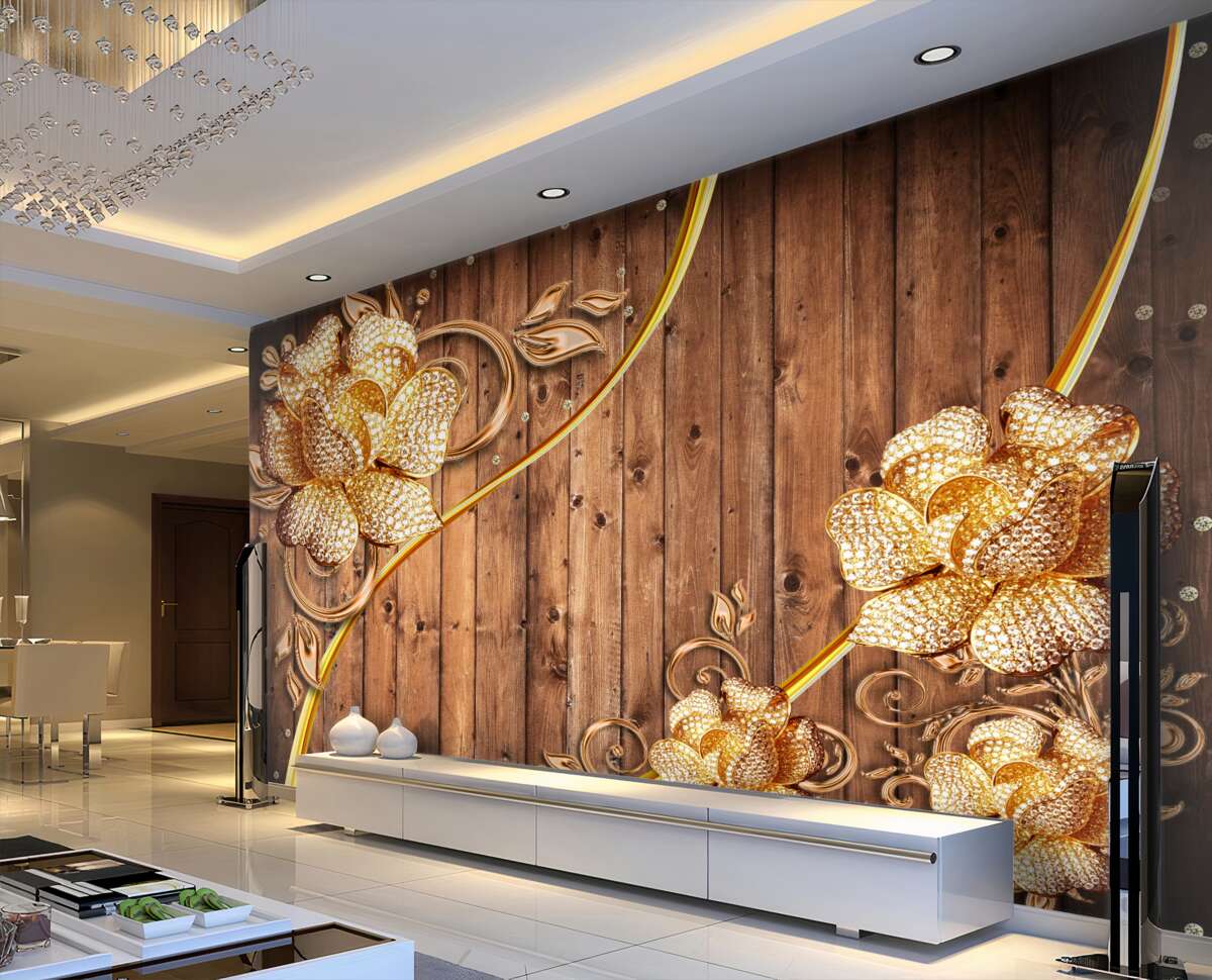 Tapeta Fototapeta złote kwiaty i gałęzie na drzewie (artykuł a96205 ) z kategorii Fototapety Popularne