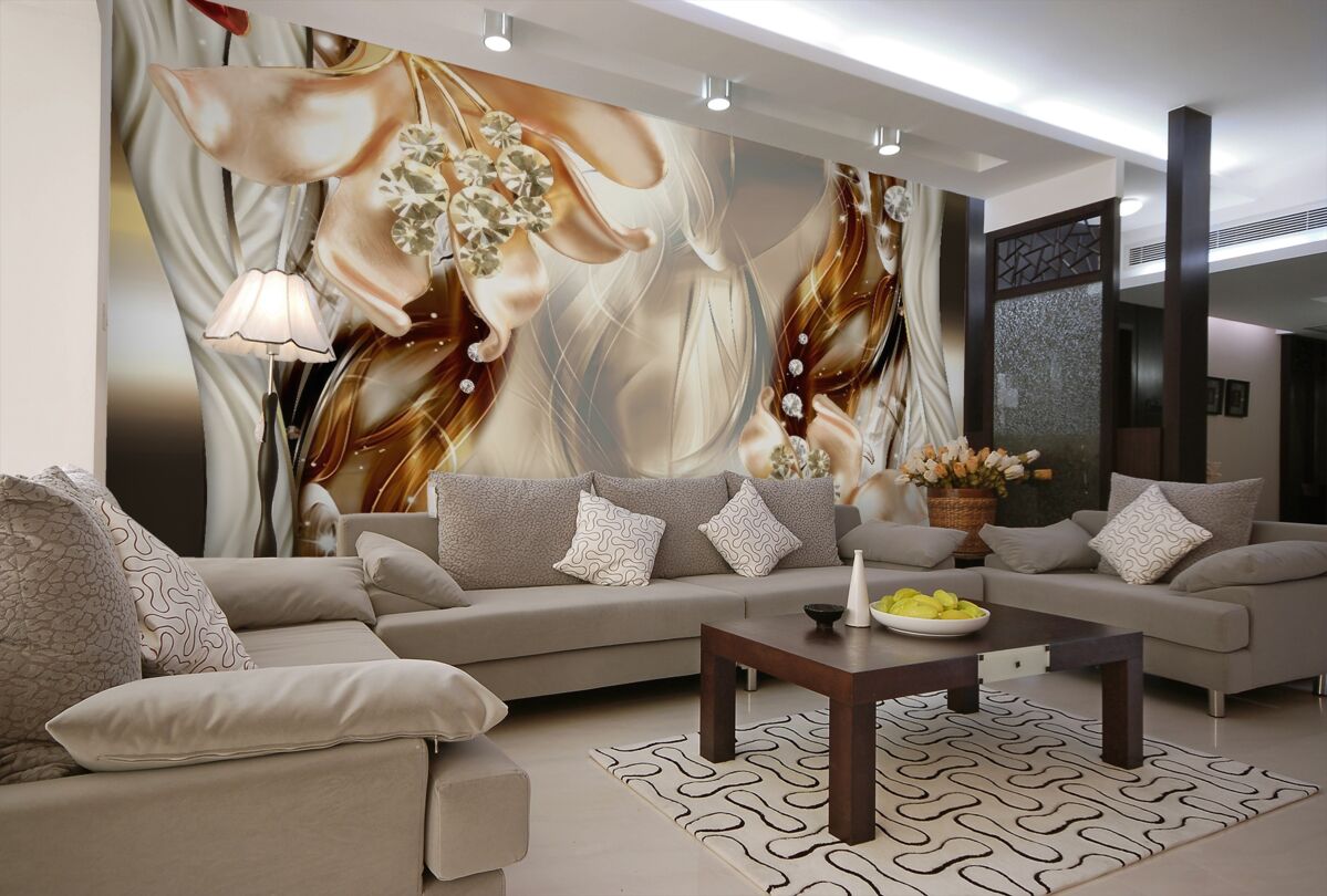Tapeta Fototapeta złote kwiaty z kamieniami (artykuł a97188 ) z kategorii Fototapety Popularne