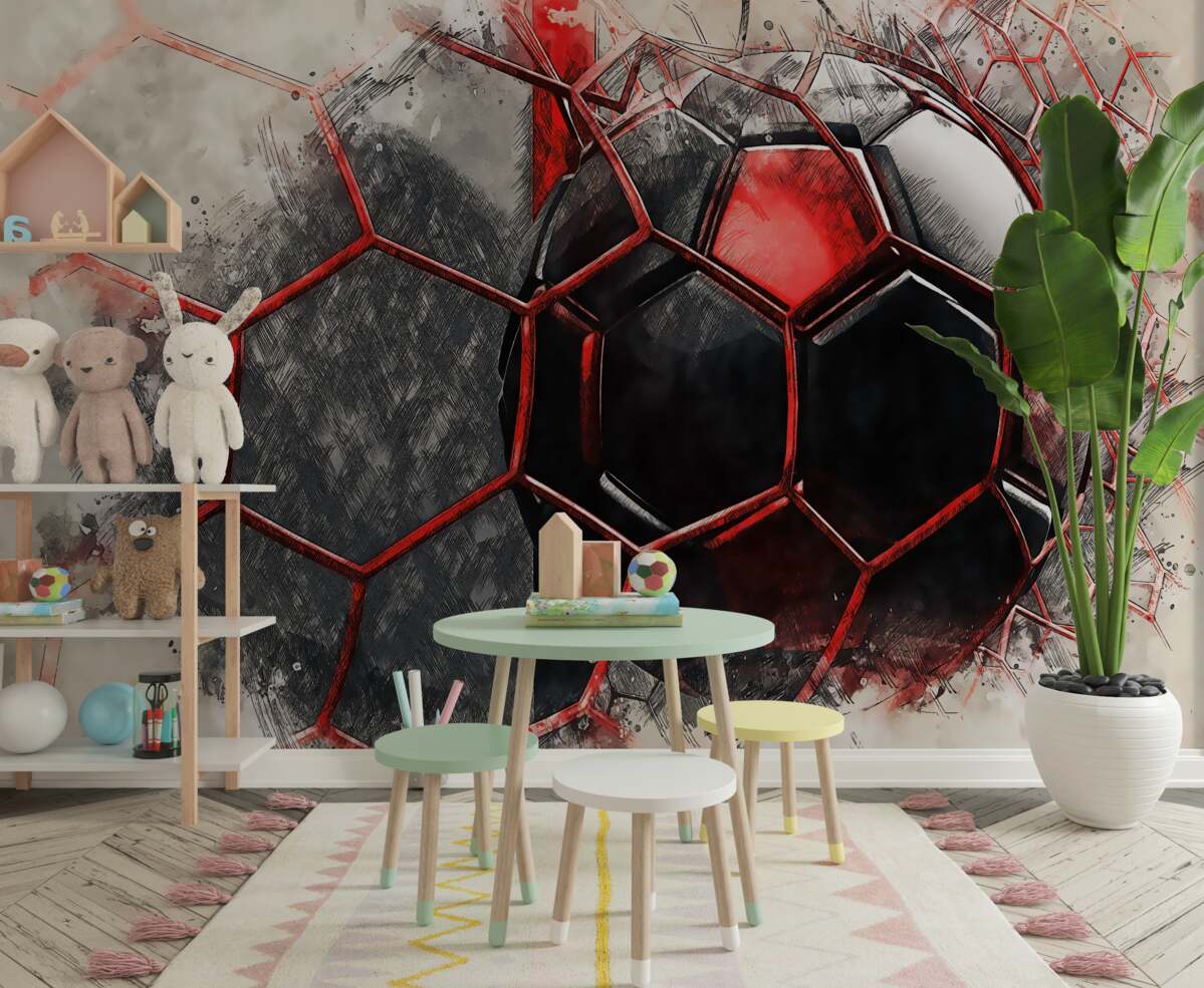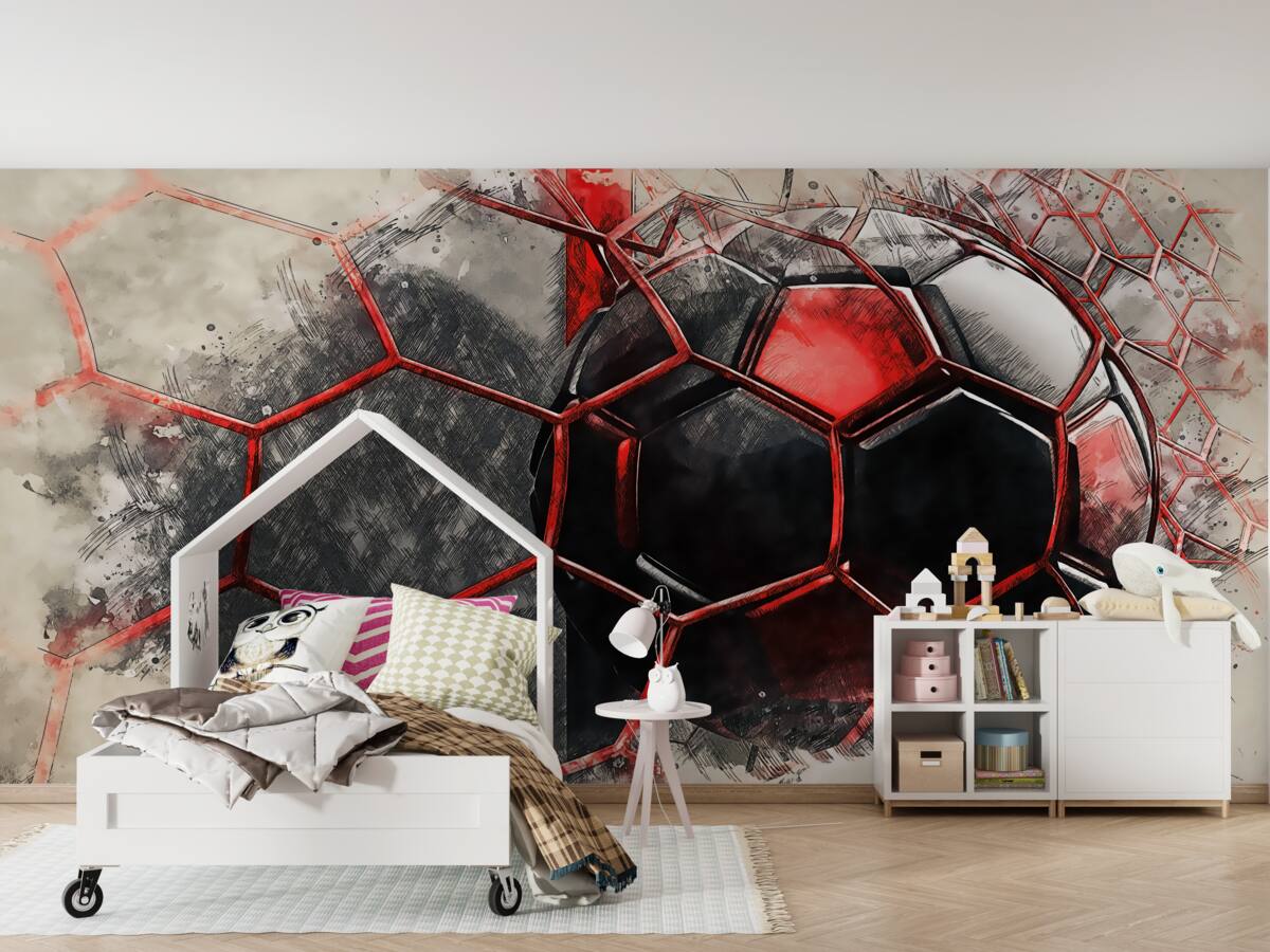 Tapeta Fototapeta Piłka nożna rozbija siatkę (artykuł a98099 ) z kategorii Fototapety Sport