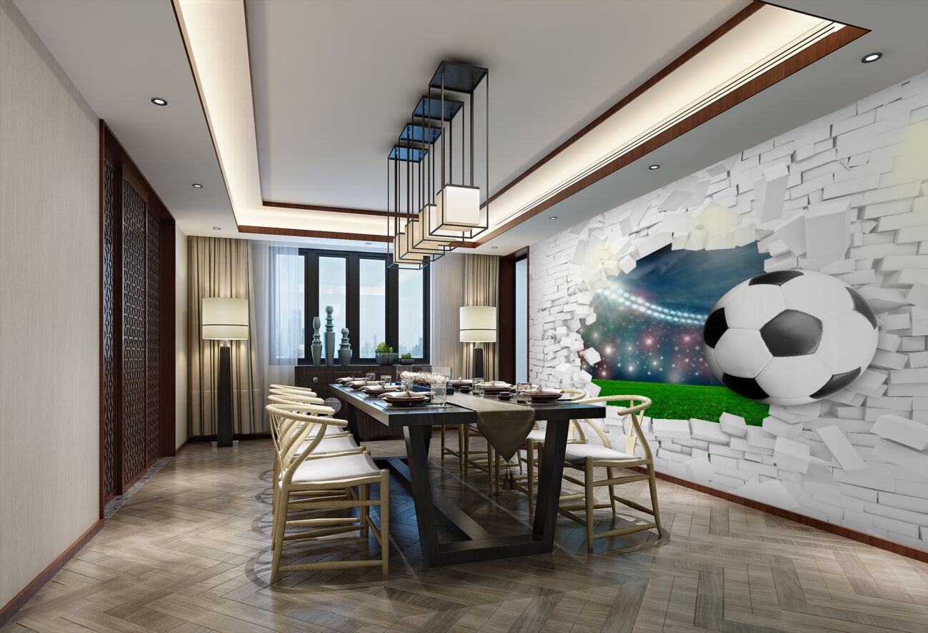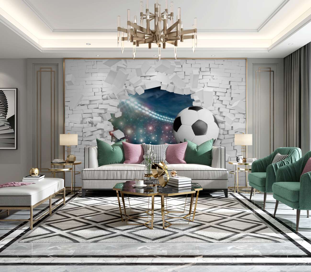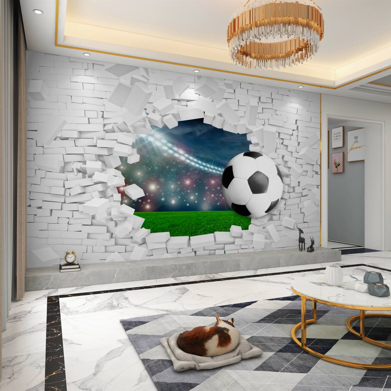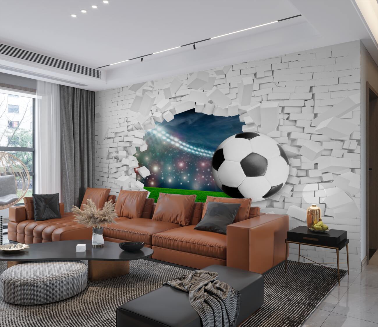 Tapeta Fototapeta Piłka piłkarska przerywa ścianę (artykuł a99108 ) z kategorii Fototapety Sport
