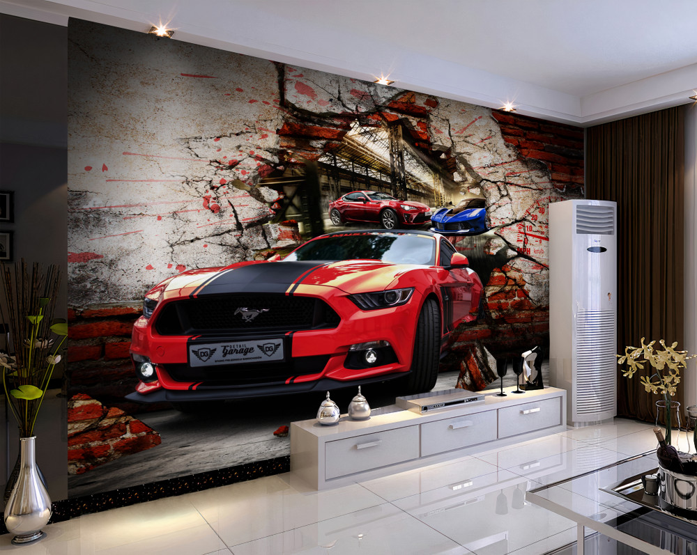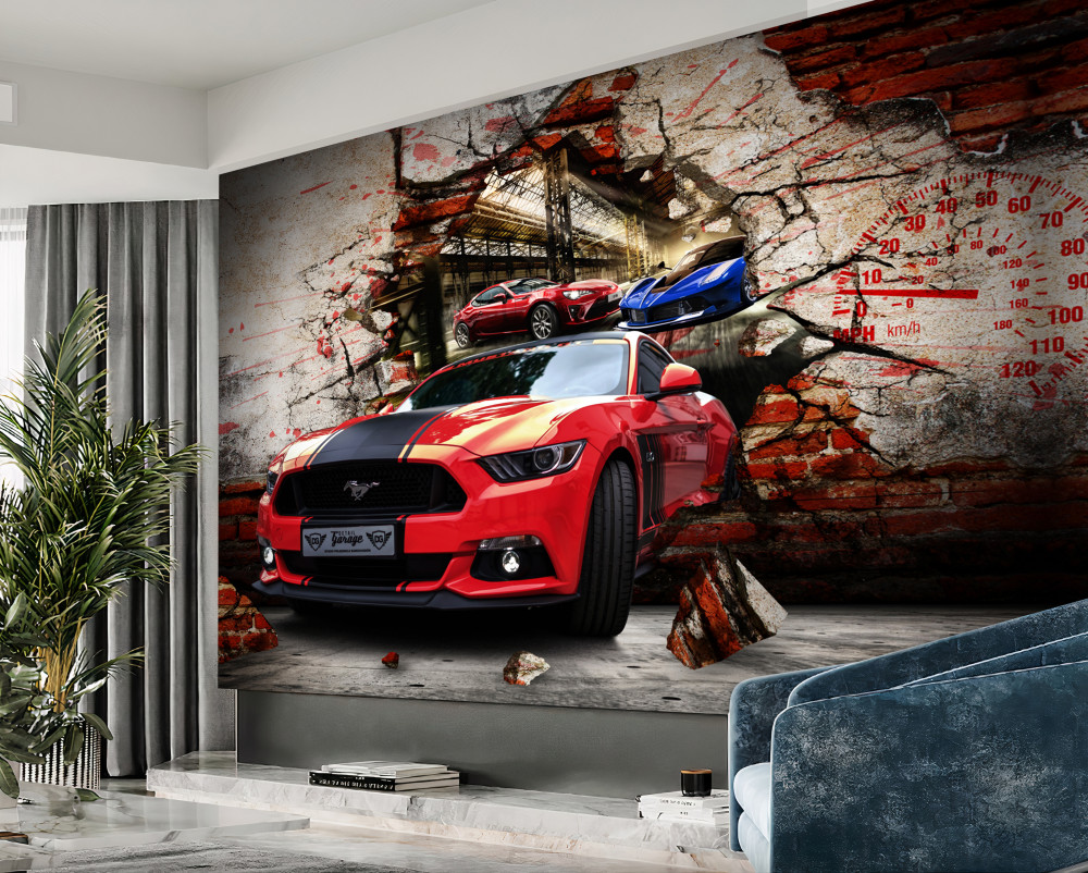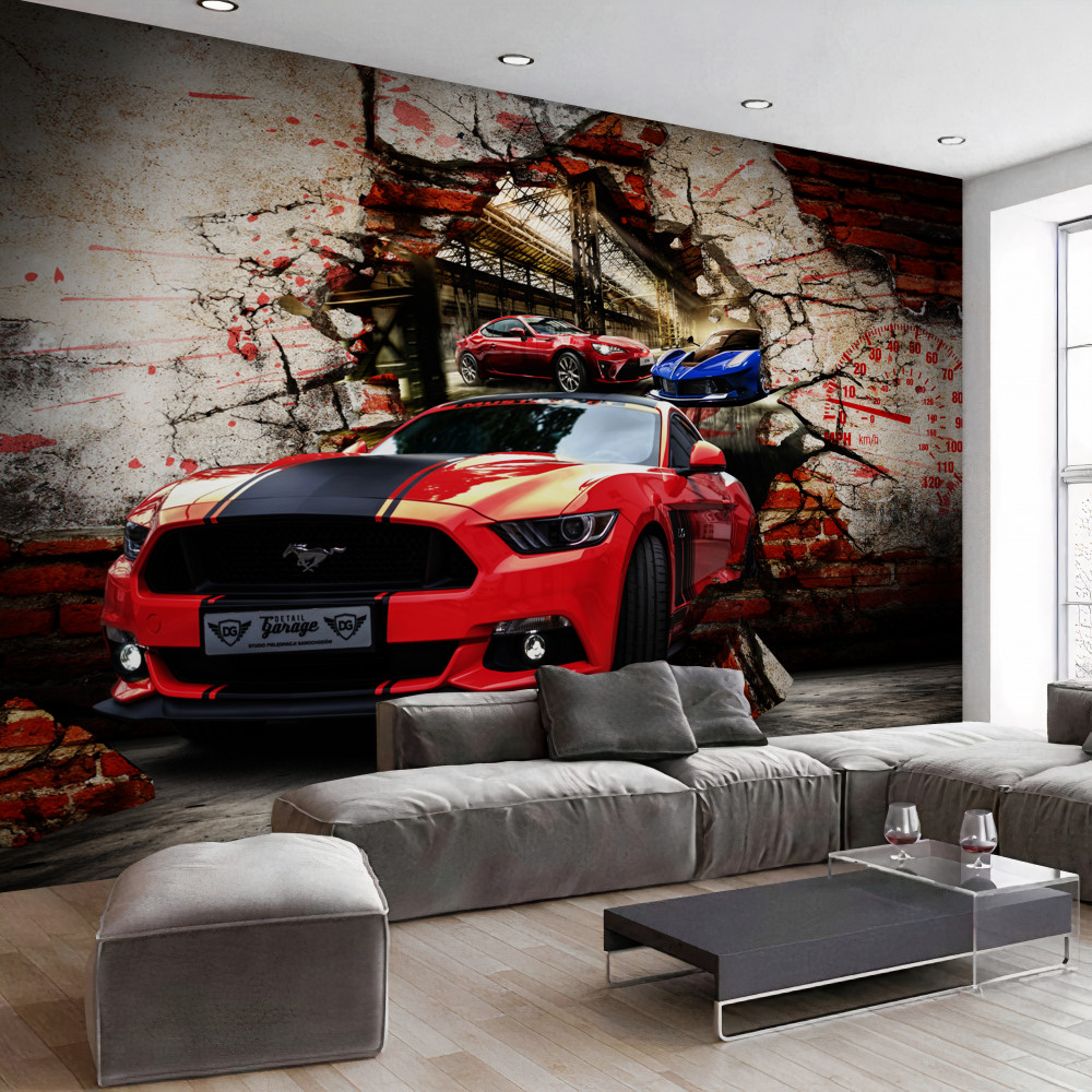 Tapeta Fototapeta czerwony samochód na ścianie (artykuł a92792 ) z kategorii Fototapety Transport