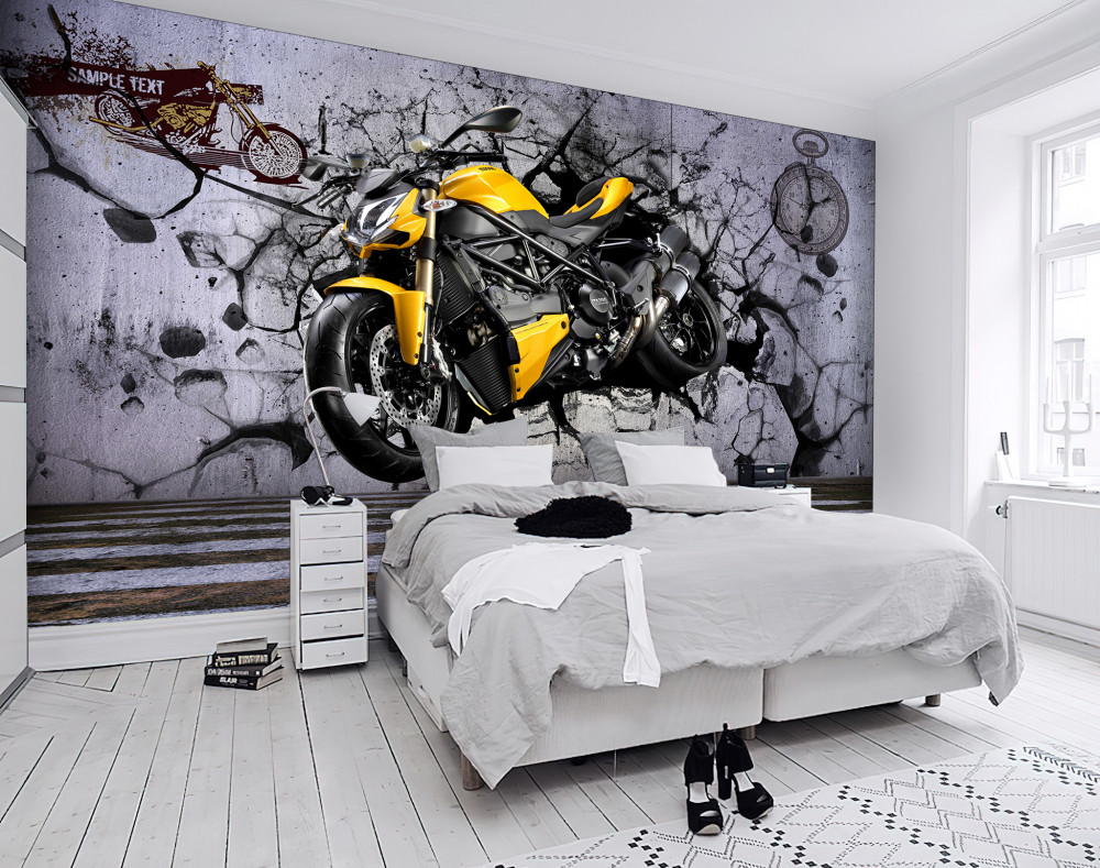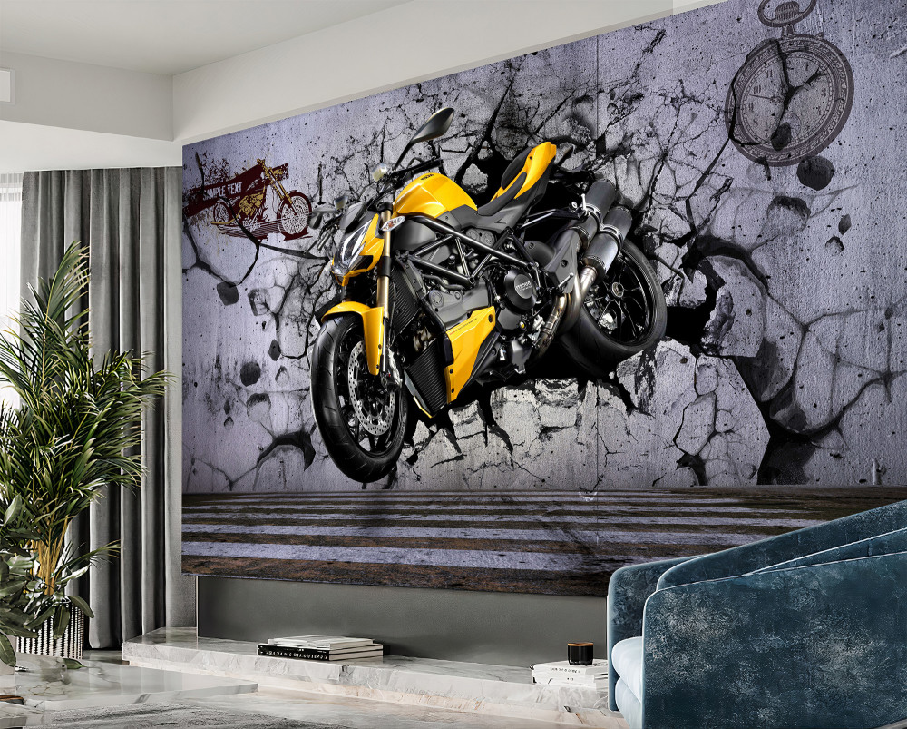 Tapeta Fototapeta graffiti z żółtym motocyklem (artykuł a94105 ) z kategorii Fototapety Transport