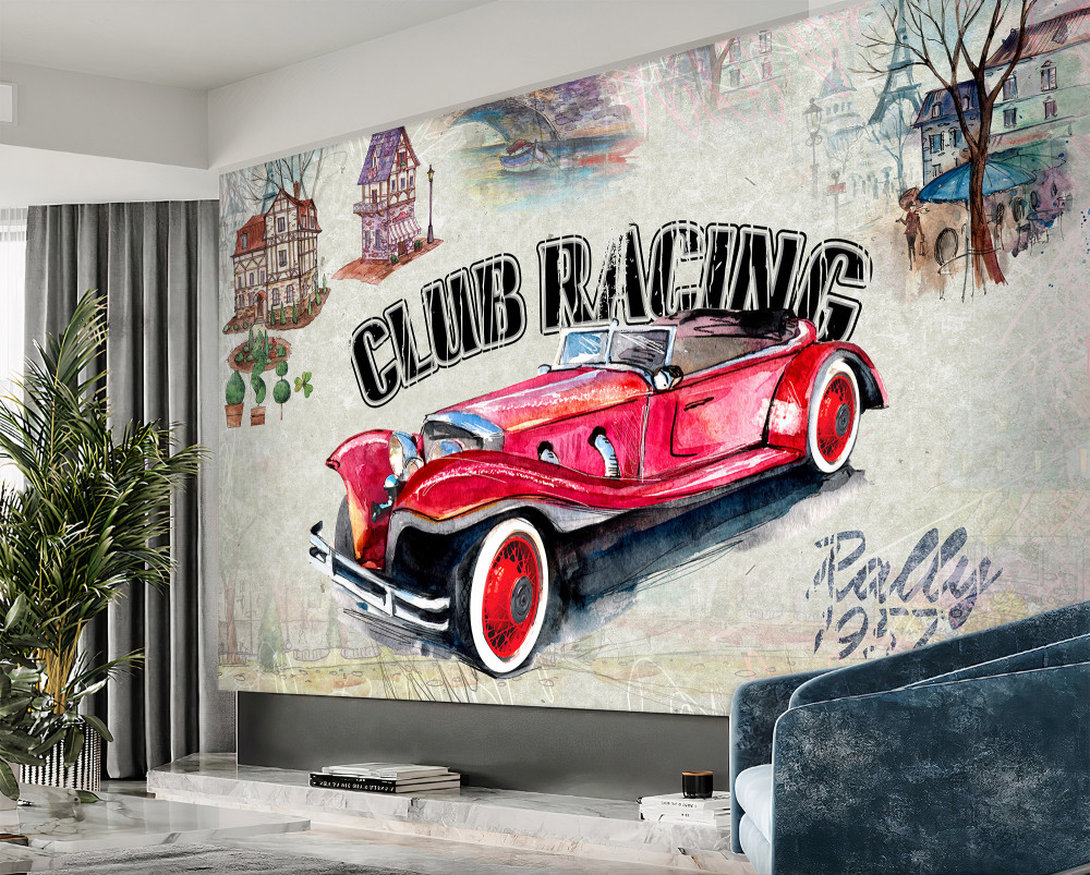 Tapeta Fototapeta stary czerwony samochód (artykuł a94090 ) z kategorii Fototapety Transport