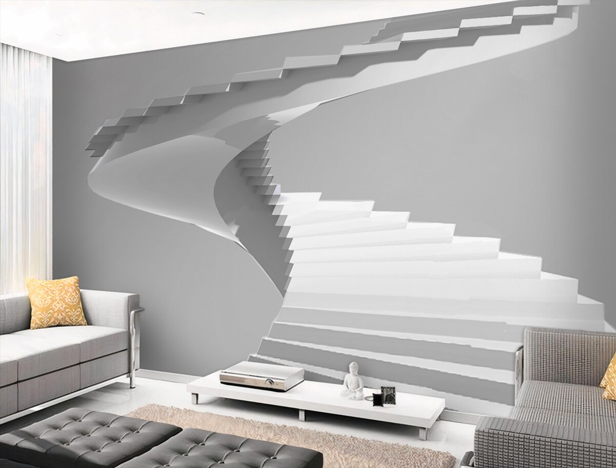 Tapeta Fototapeta białe kręcone schody (artykuł a97660 ) z kategorii Fototapety 3D