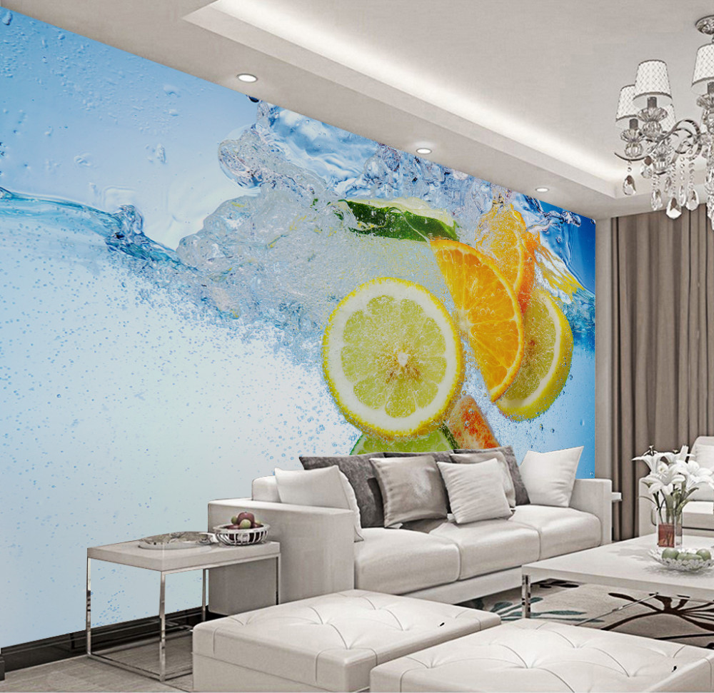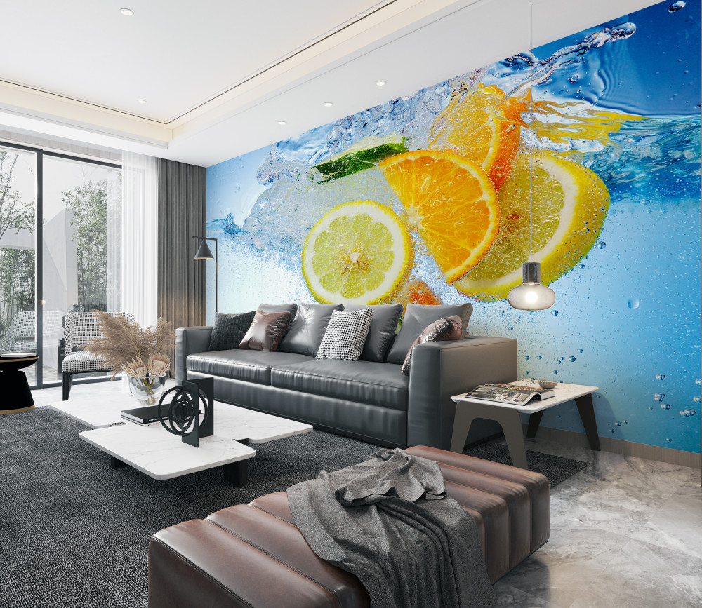 Tapeta Fototapeta kawałki owoców w wodzie (artykuł a89605 ) z kategorii Fototapety Zrób jadalnię