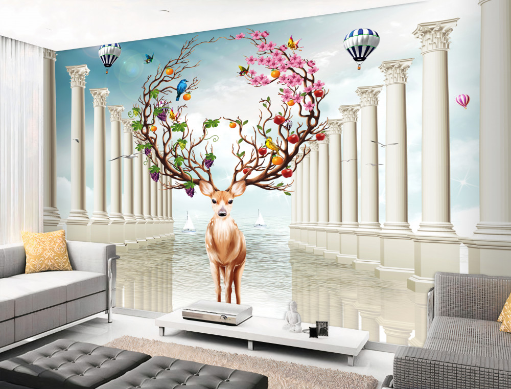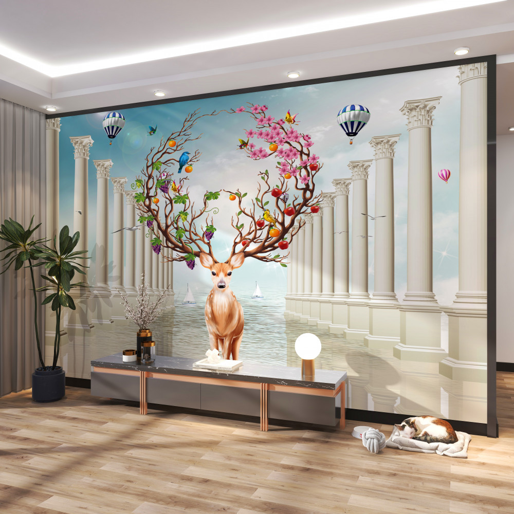 Tapeta Fototapeta biała kolumnada i abstrakcyjny jeleń rogaty (artykuł a91851 ) z kategorii Fototapety Zwierzęta
