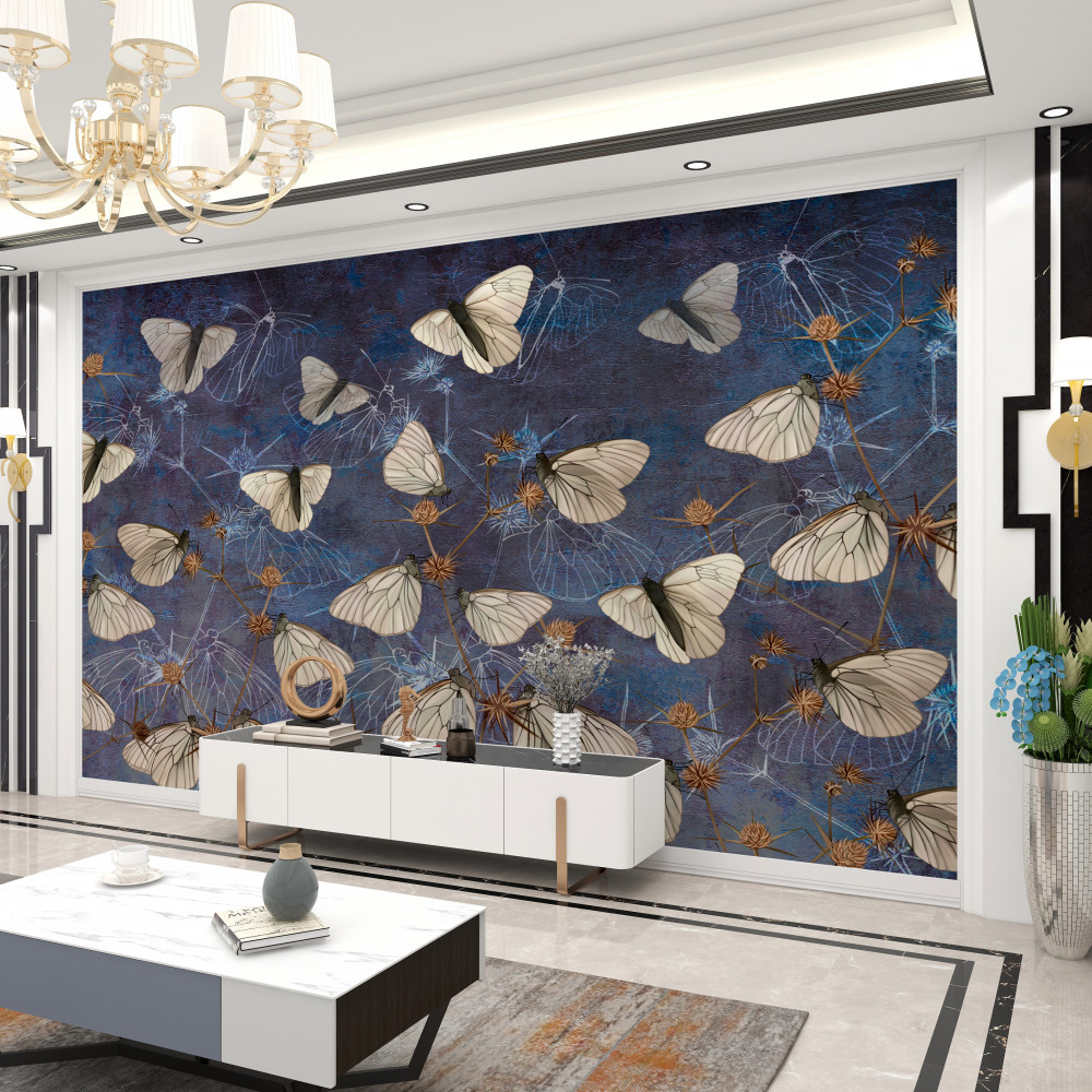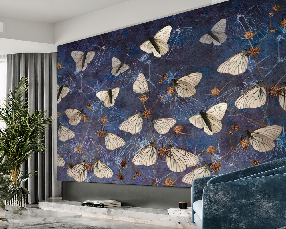 Tapeta Fototapeta białe motyle na roślinach (artykuł a88365 ) z kategorii Fototapety Zwierzęta