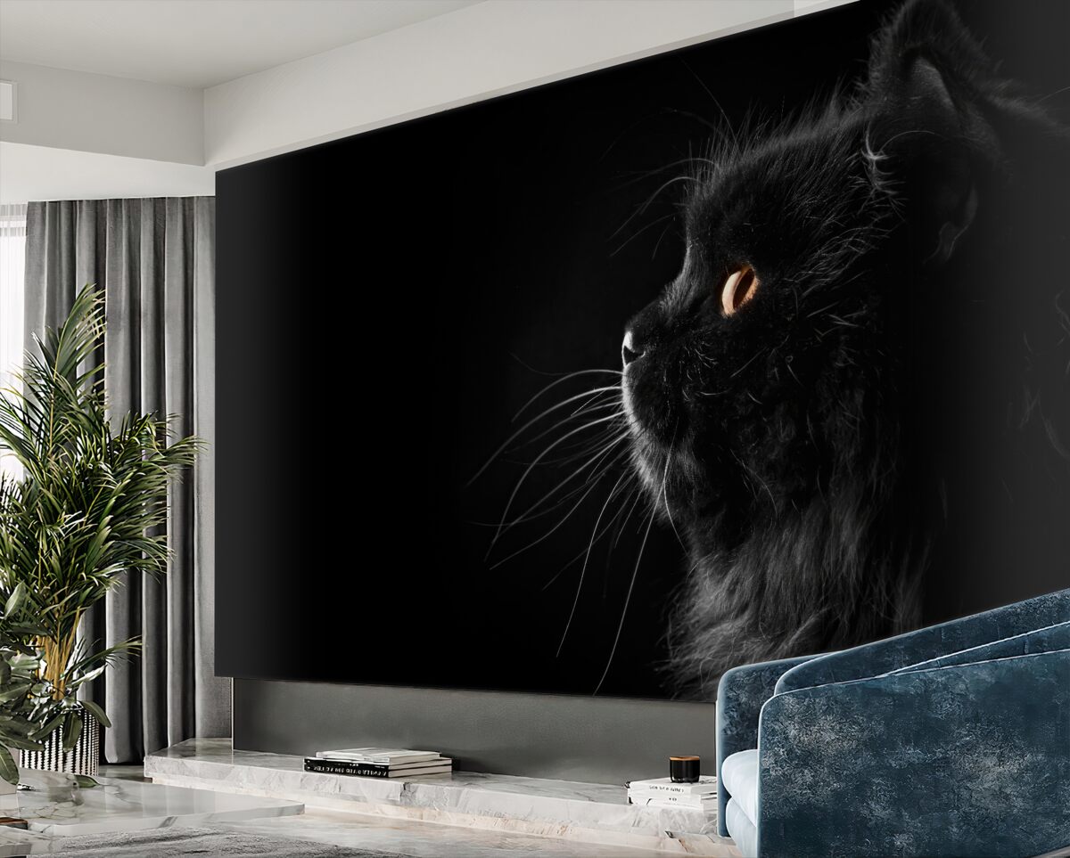 Tapeta Fototapeta Czarny kot na czarnym tle (artykuł a97407 ) z kategorii Fototapety Zwierzęta