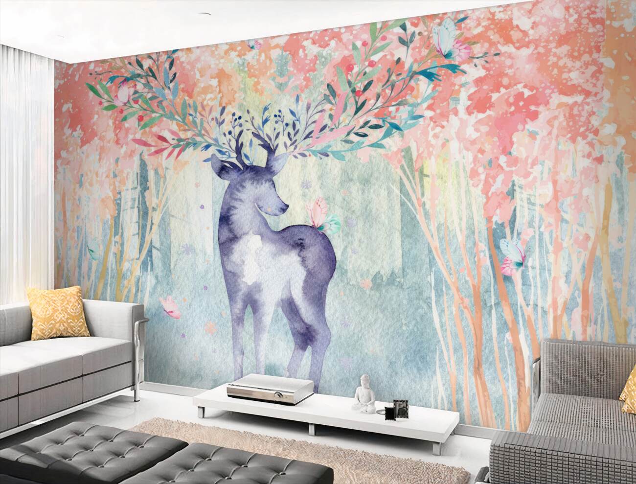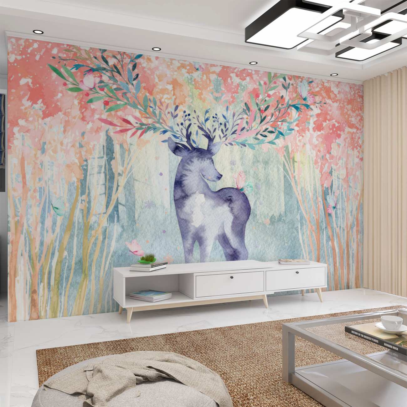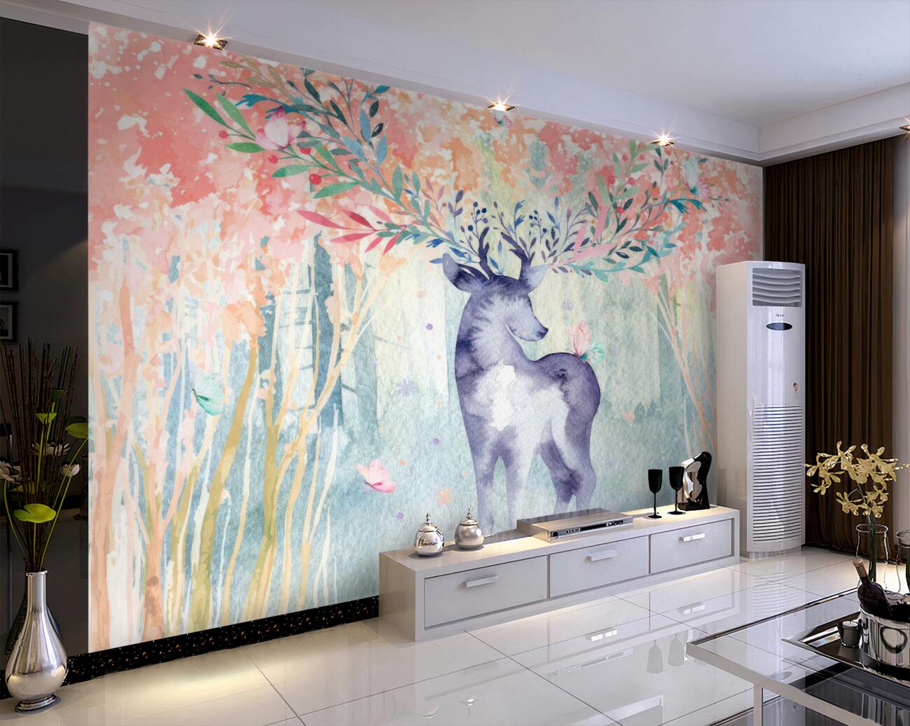 Tapeta Fototapeta Dumny jelenie w jesieni akwareli leśnej (artykuł a99275 ) z kategorii Fototapety Zwierzęta