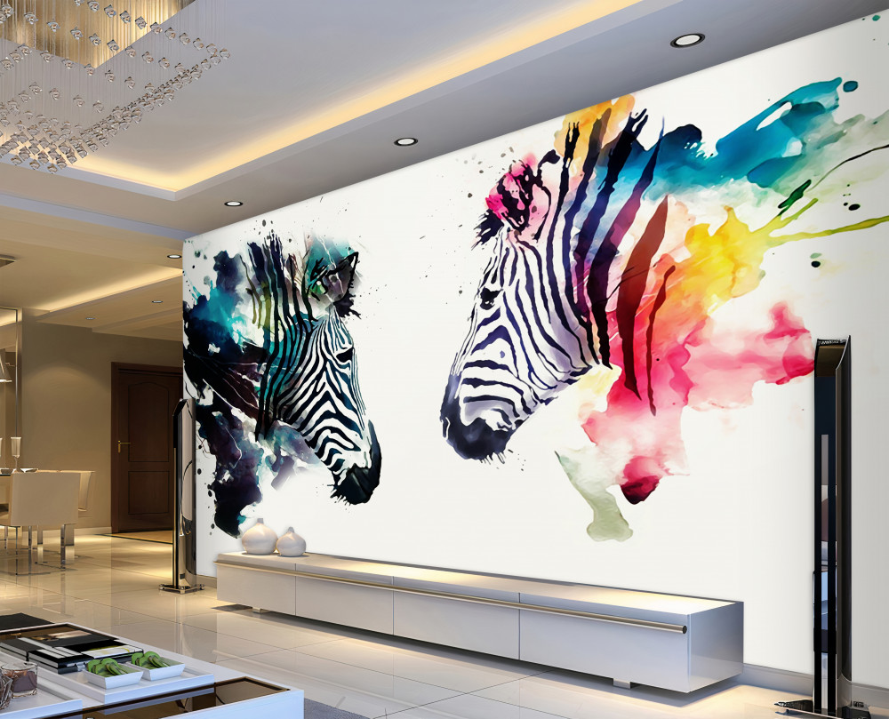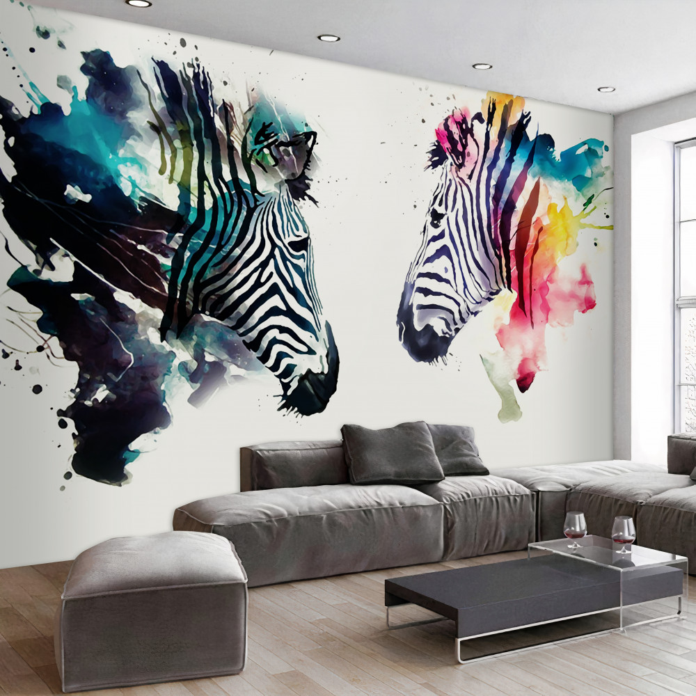 Tapeta Fototapeta dwie zebry farbą abstrakcyjną (artykuł a91662 ) z kategorii Fototapety Zwierzęta