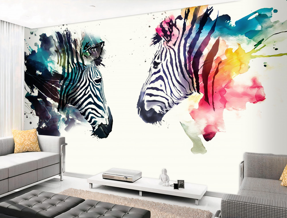 Tapeta Fototapeta dwie zebry w jasnych kolorach (artykuł a91823 ) z kategorii Fototapety Zwierzęta