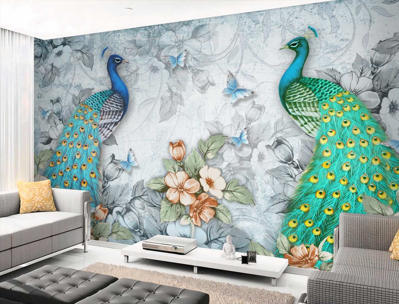 Tapeta Fototapeta Kilka pięknych pawów z piórami (artykuł a99737 ) z kategorii Fototapety Zwierzęta