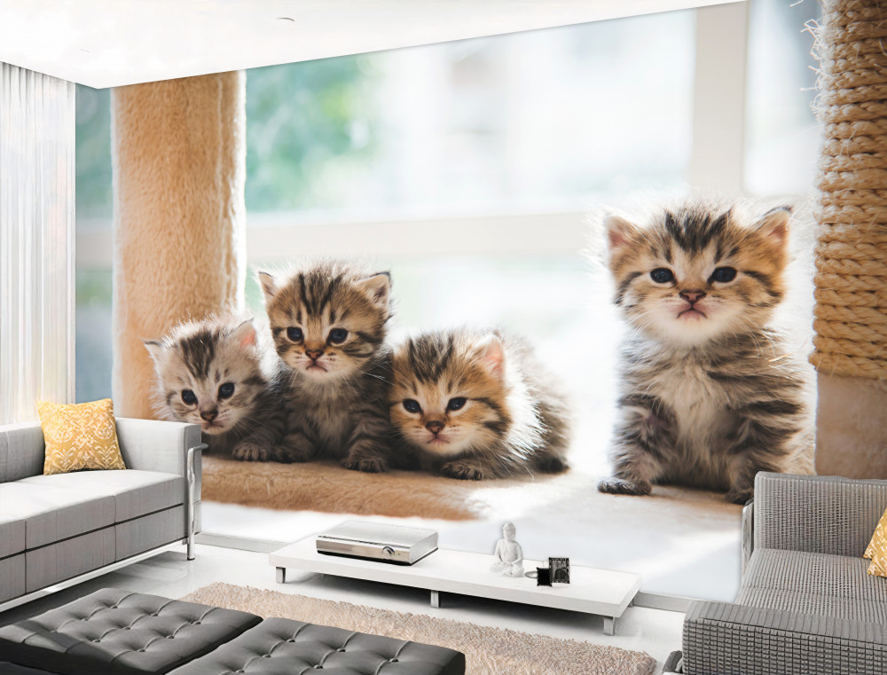 Tapeta Fototapeta kocięta patrzą na matkę (artykuł a93087 ) z kategorii Fototapety Zwierzęta