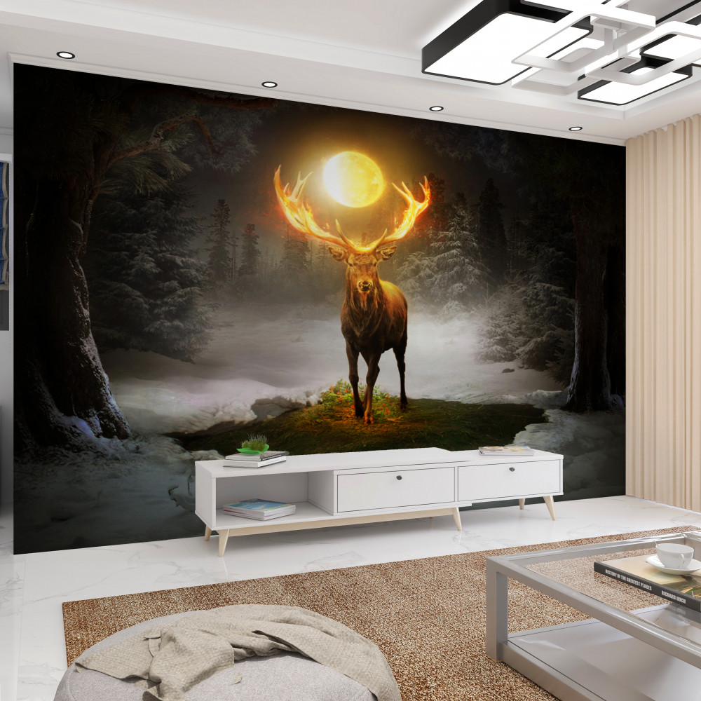 Tapeta Fototapeta mistyczny jeleń i złoty księżyc (artykuł a89387 ) z kategorii Fototapety Zwierzęta