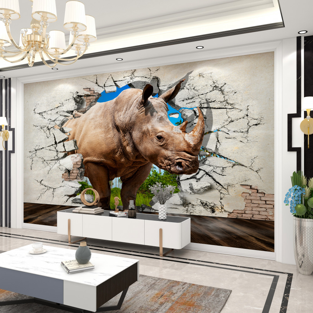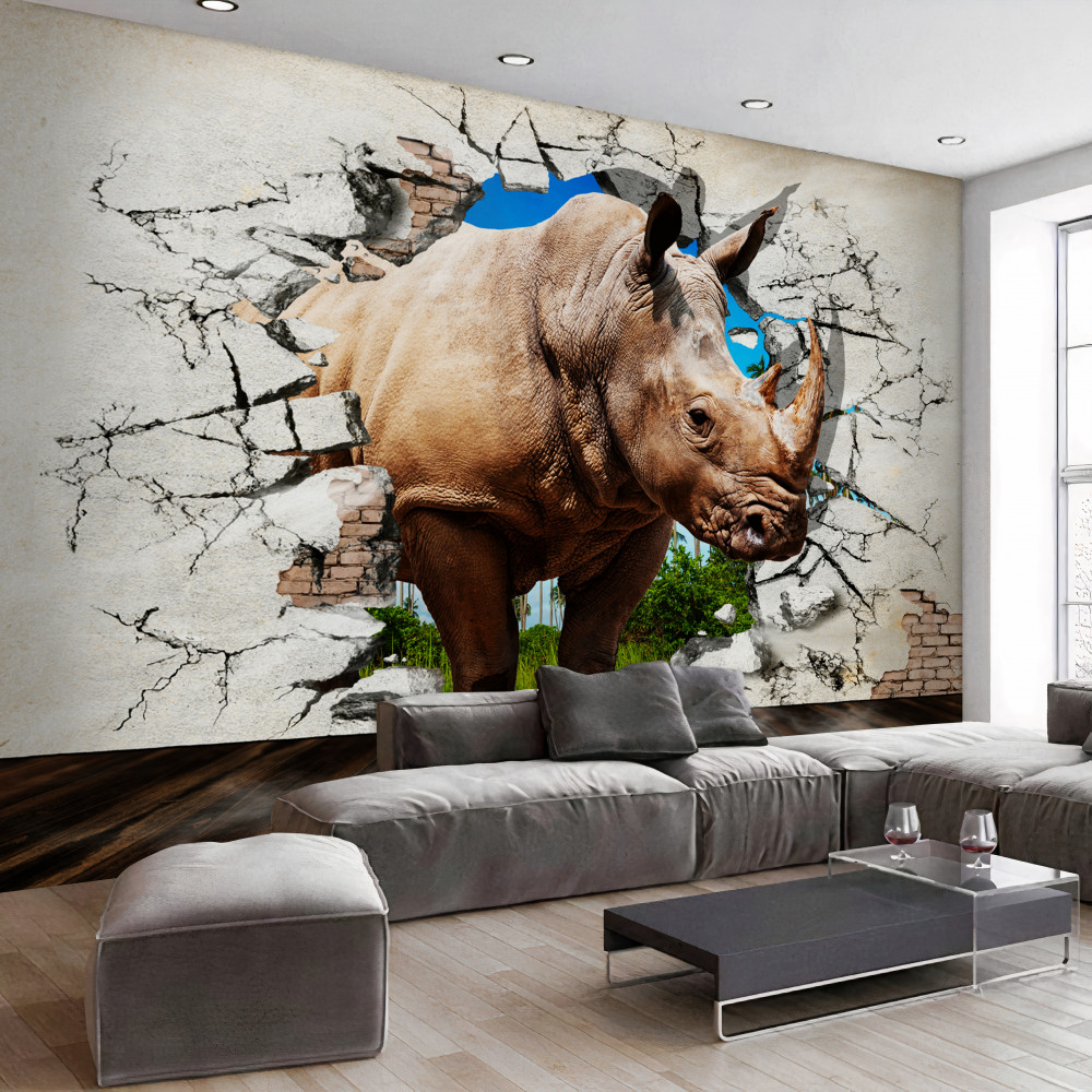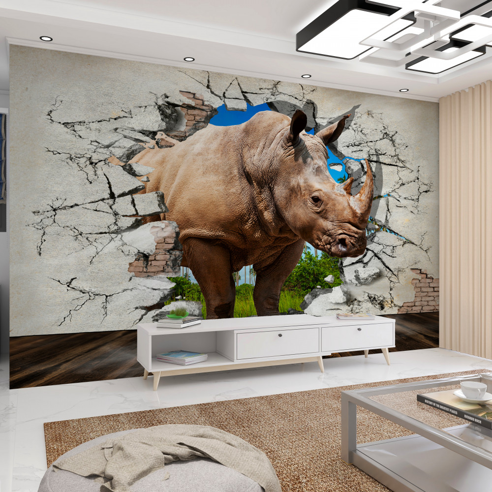 Tapeta Fototapeta nosorożec rozbija ścianę (artykuł a93482 ) z kategorii Fototapety Zwierzęta