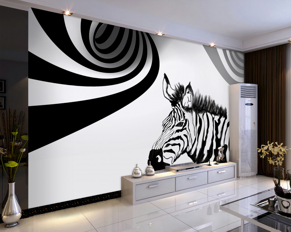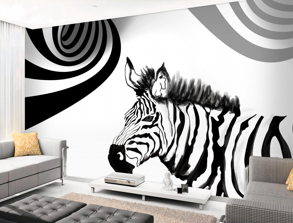 Tapeta Fototapeta oczekująca zebra czarno-biała (artykuł a91930 ) z kategorii Fototapety Zwierzęta