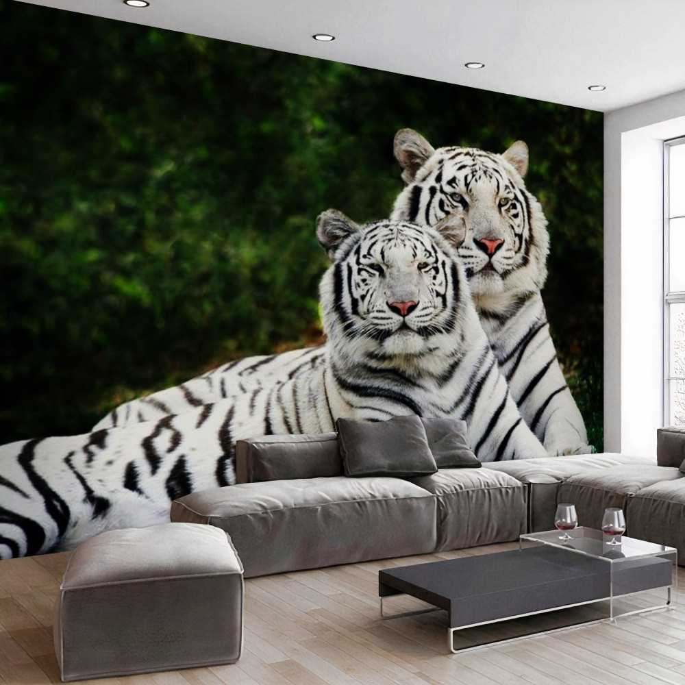 Tapeta Fototapeta para rodziny białych tygrysów w lesie (artykuł a89373 ) z kategorii Fototapety Zwierzęta