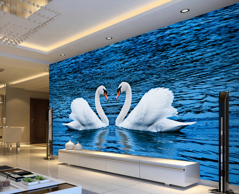 Tapeta Fototapeta para rodziny łabędzi na wodzie (artykuł a92409 ) z kategorii Fototapety Zwierzęta