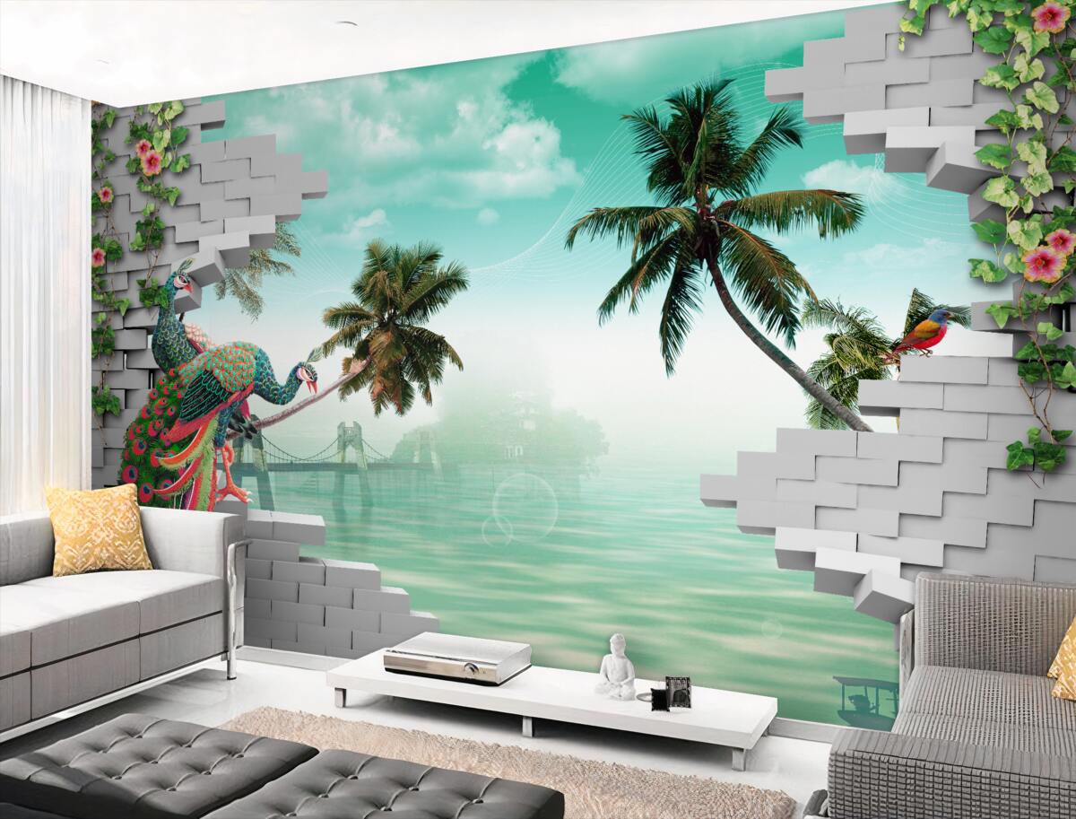 Tapeta Fototapeta Pawie na palmie (artykuł a91638 ) z kategorii Fototapety Zwierzęta