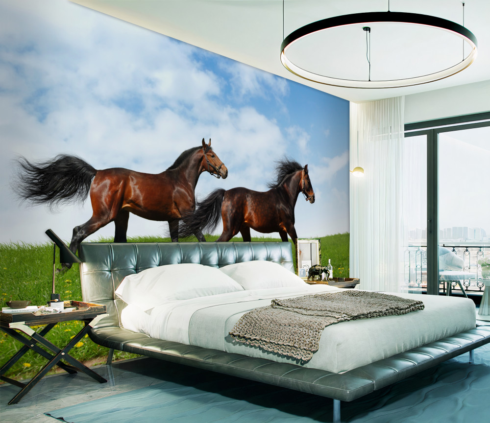 Tapeta Fototapeta poranny koń biegnie przez łąkę (artykuł a89401 ) z kategorii Fototapety Zwierzęta