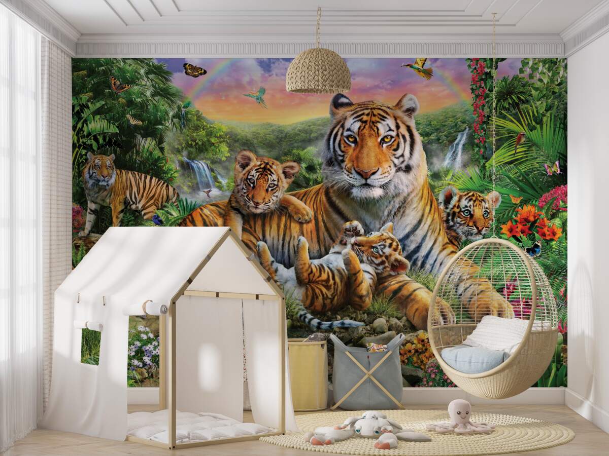 Tapeta Fototapeta Rodzina tygrysów (artykuł a96375 ) z kategorii Fototapety Zwierzęta